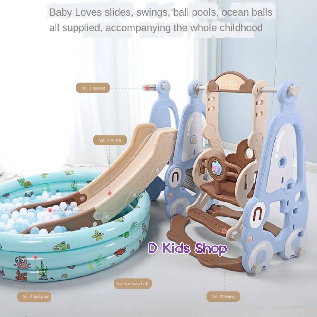 💥S2💥สไลเดอร์เด็กมีชิงช้า 3in1 แถมฟรีแป้นบาส/ลูกบาส No.6036