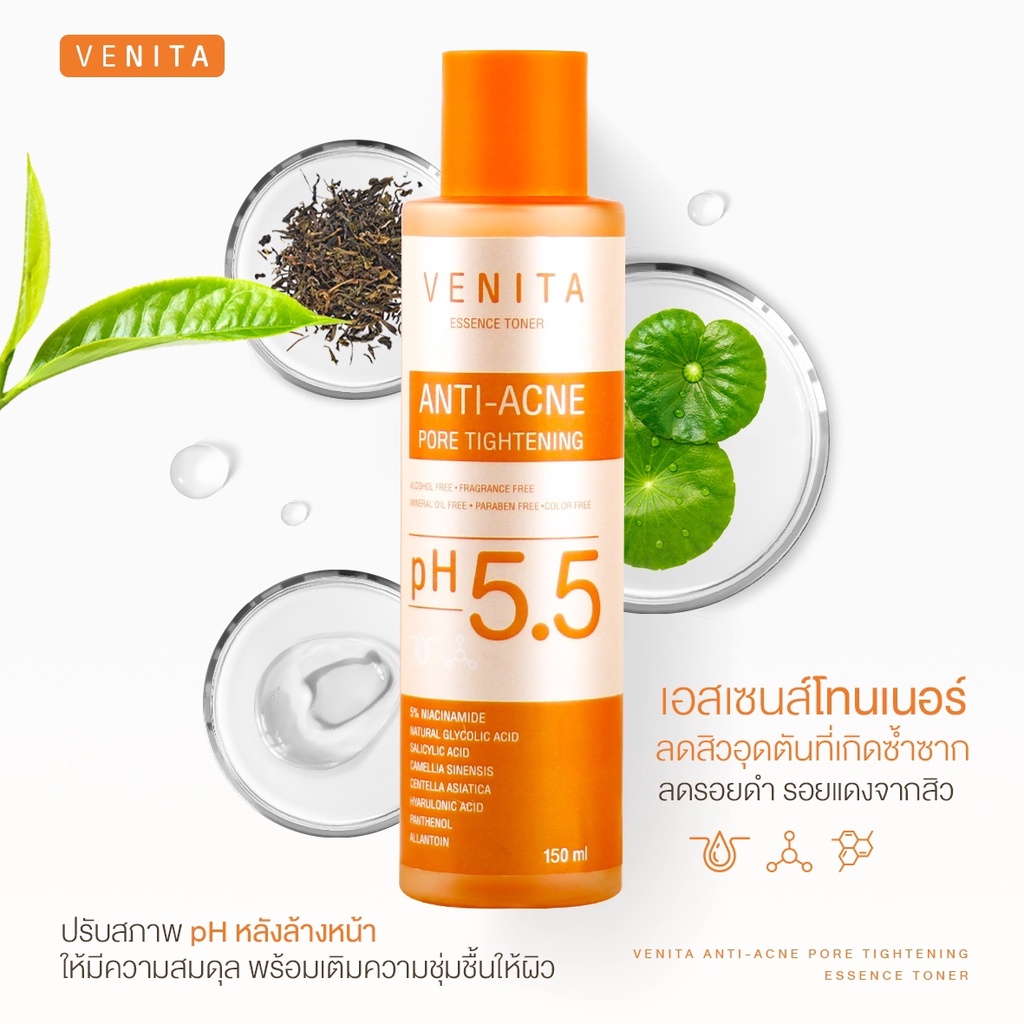 [เอสเซนส์โทนเนอร์ลดสิว] VENITA ANTI-ACNE PORE TIGHTENING ESSENCE TONER 150 ML