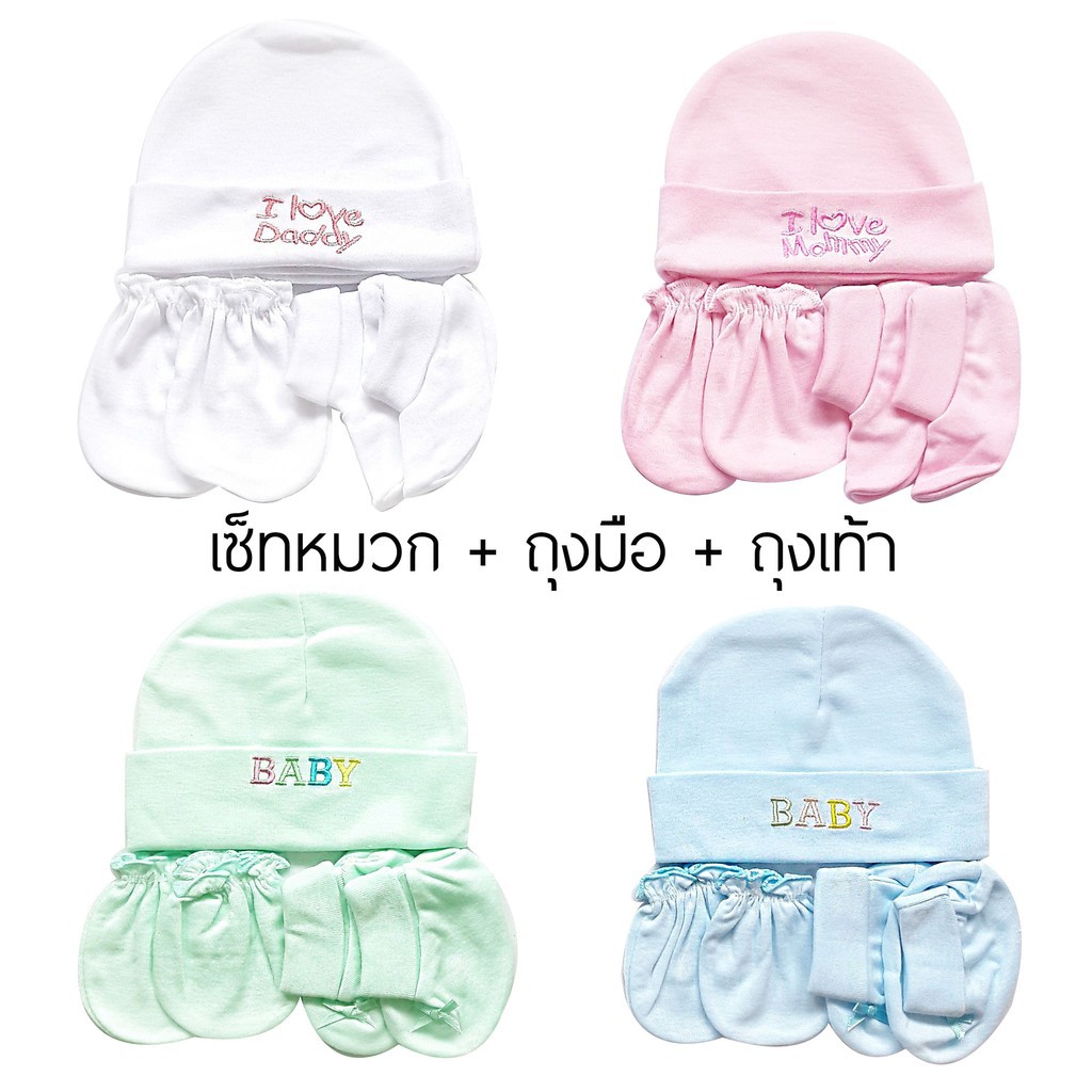 (จัดโปรถูกสุดๆ!!) หมวก ถุงมือ ถุงเท้าเด็กอ่อน/เด็กแรกเกิด สีพื้นพาสเทล(ปักดิ้นเงิน)/สีพาสเทล/สีหวาน