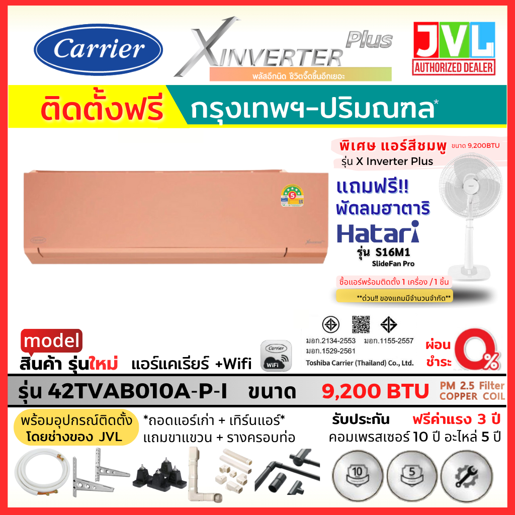 ติดตั้งฟรี* Carrier แคเรียร์ แอร์ รุ่น X INVERTER PLUS 42TVAB-I ส้ม ชมพู เขียว WIFI เฉพาะกทม-ปริมณฑล