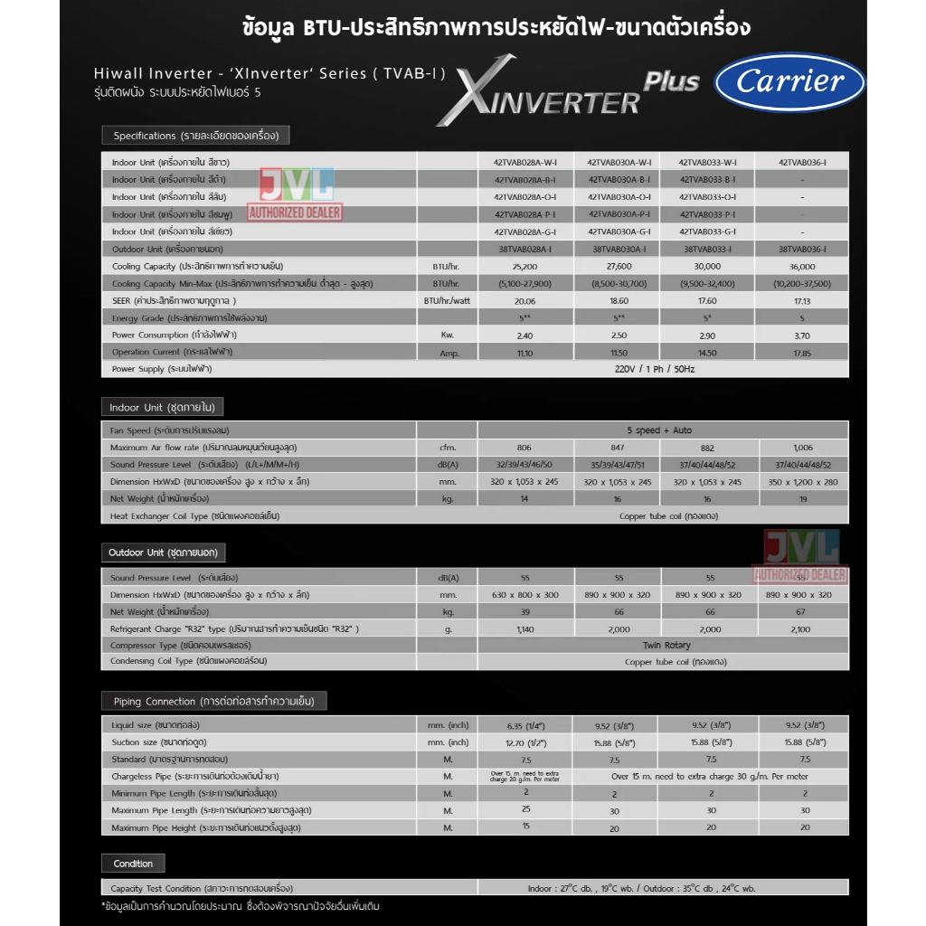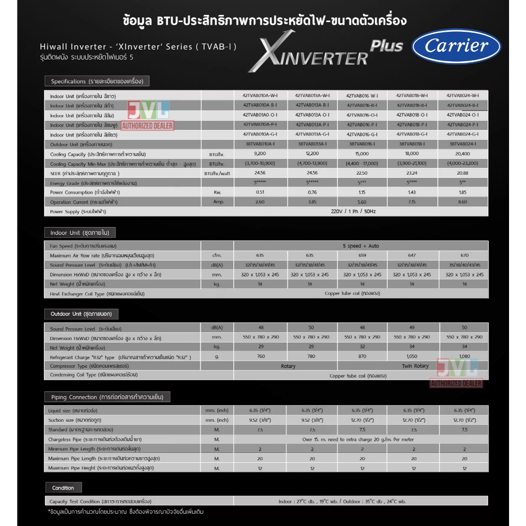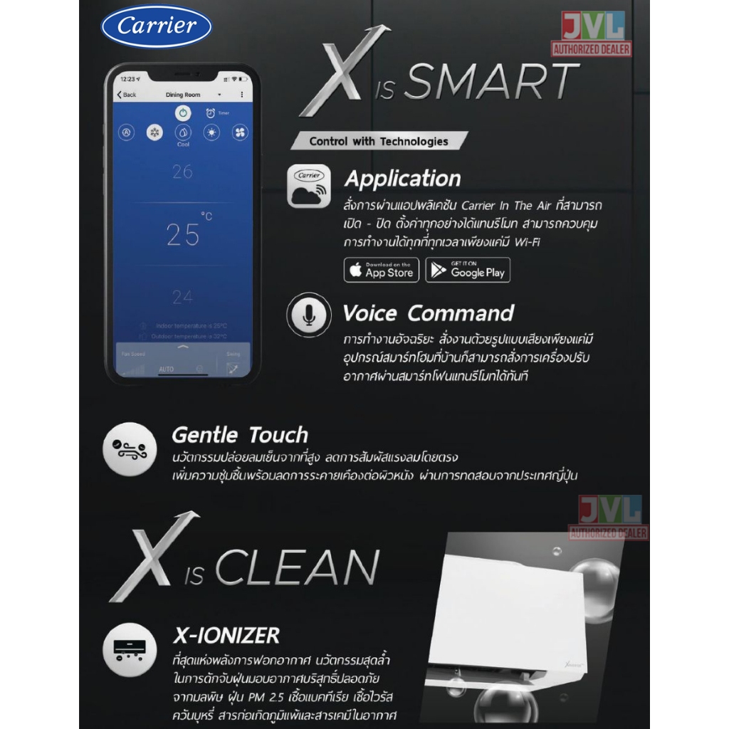 ติดตั้งต่างจังหวัด** Carrier แคเรียร์ แอร์ รุ่น X INVERTER PLUS 42TVAB-I ส้ม ชมพู เขียวWIFIเบอร์5 5ดาว ติดคิวช่างQ-CHANG