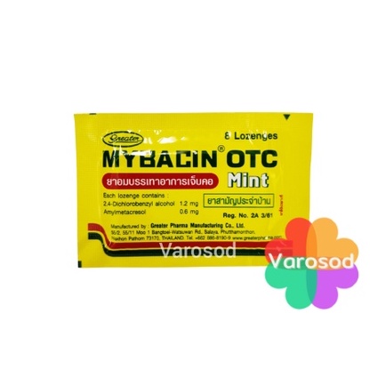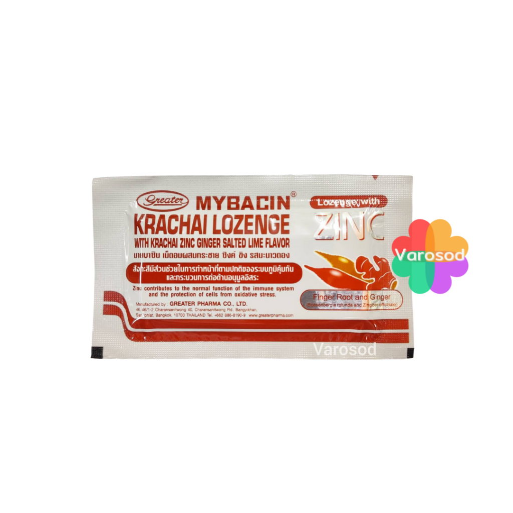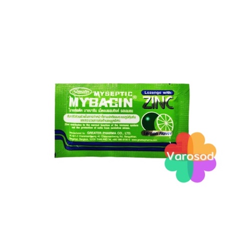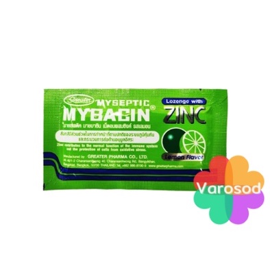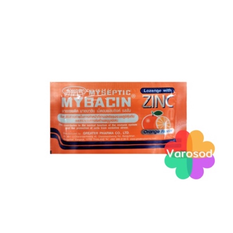 มายบาซิน Mybacin Zinc เม็ดอม มายเซพติค ผสมซิงค์ รสส้ม, มะนาว, มิ้นท์ 10 เม็ด