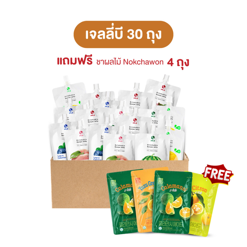 [โปร 30ถุง แถมชาผลไม้ 4ถุง] JellyB เจลลี่บี บุกผลไม้ ไม่มีน้ำตาล (0-5kcal/ถุง)150ml.x30packs