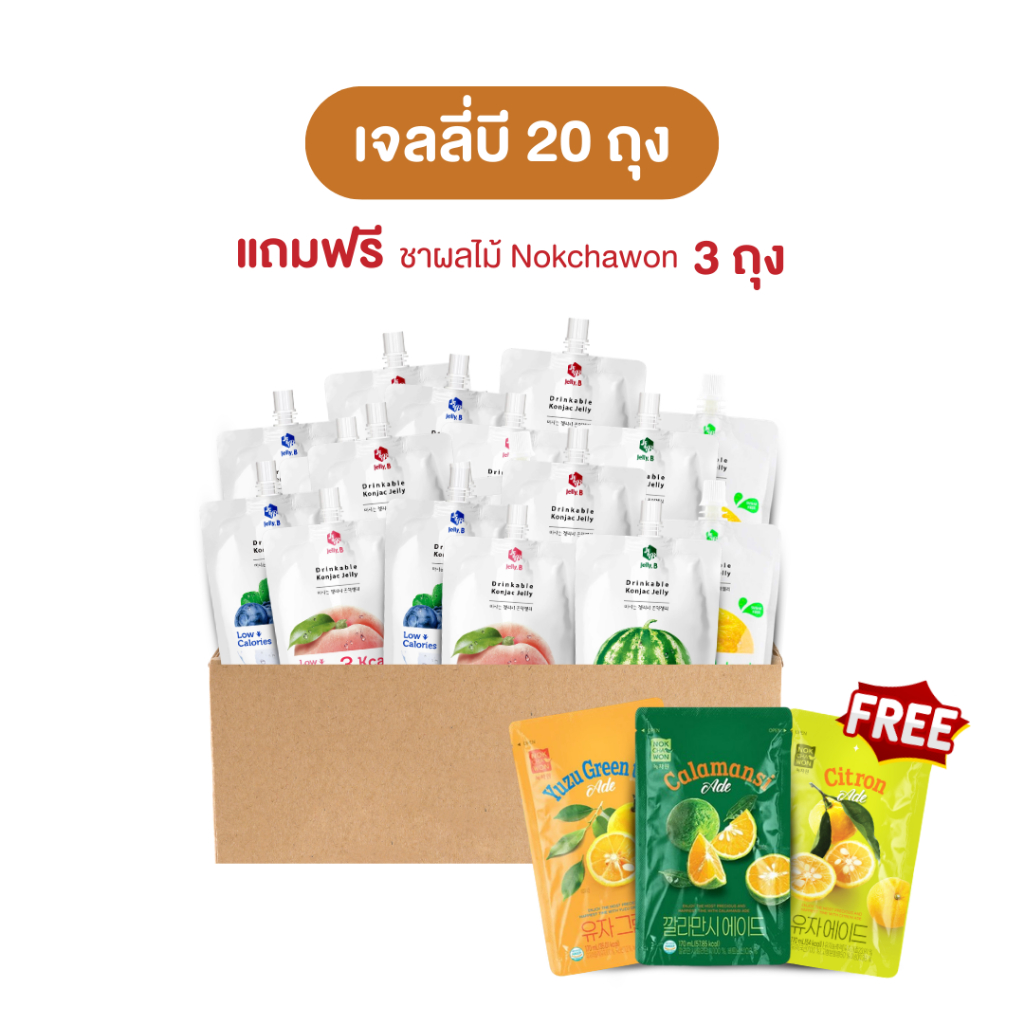 [โปร20ถุง แถมชาผลไม้ 3ถุง] JellyB เจลลี่บี บุกรสผลไม้จากเกาหลี (0-5kcal) ไม่มีน้ำตาล 150ml.x20