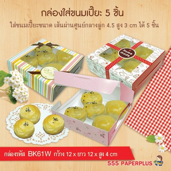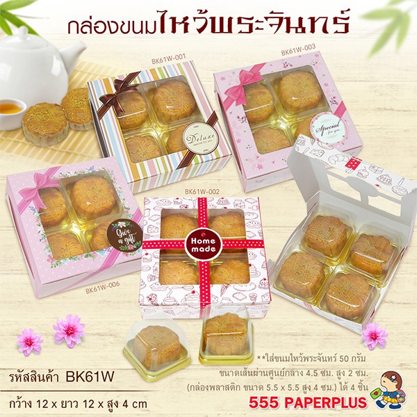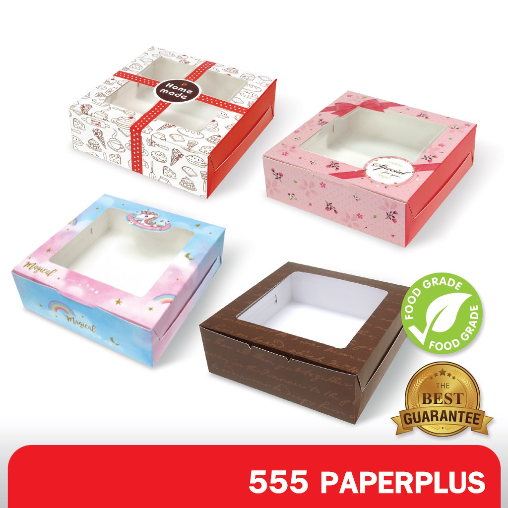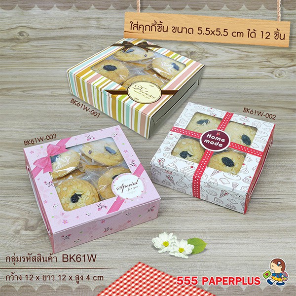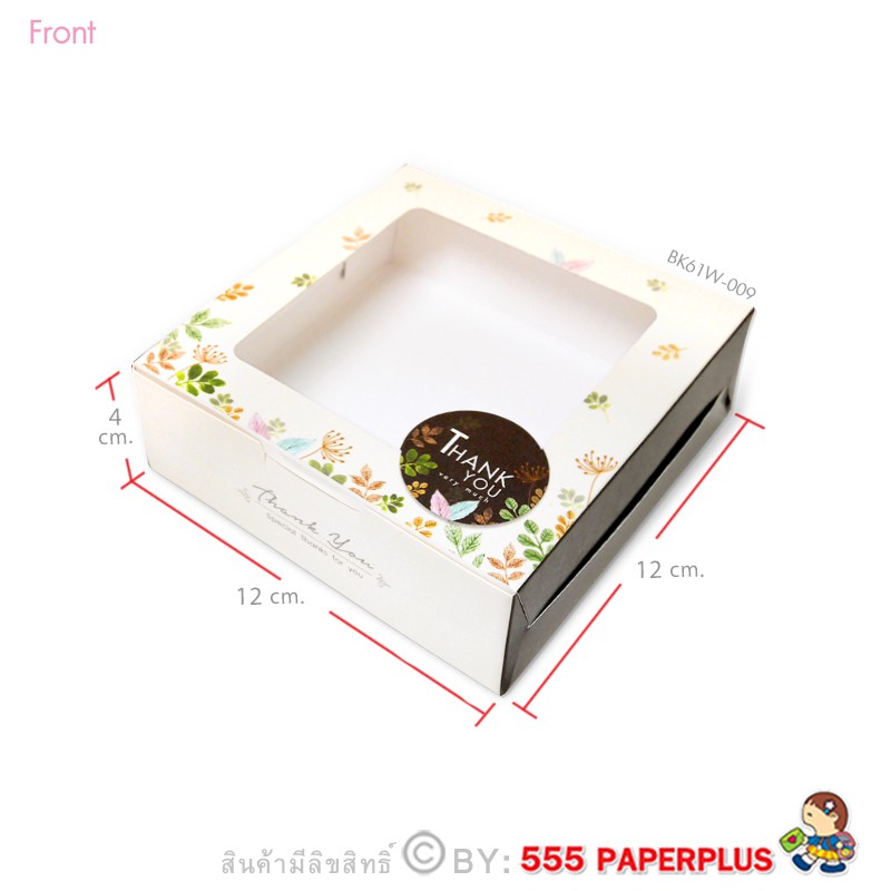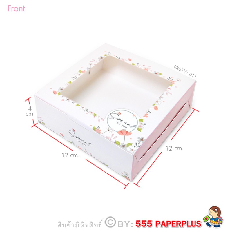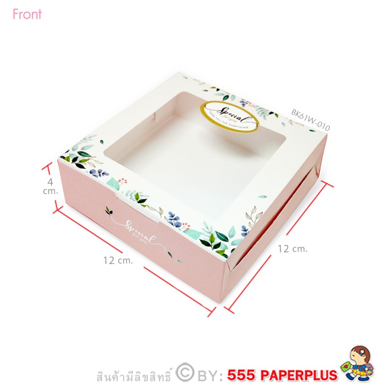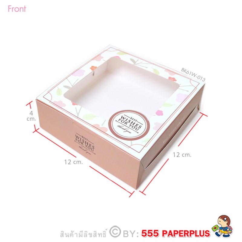 555paperplus กล่องบราวนี่ 12x12x4ซม.(20 ใบ)กล่องขนม ทรงแบน ใส่ขนมเปี๊ยะ ทาร์ตไข่ (BK61W)