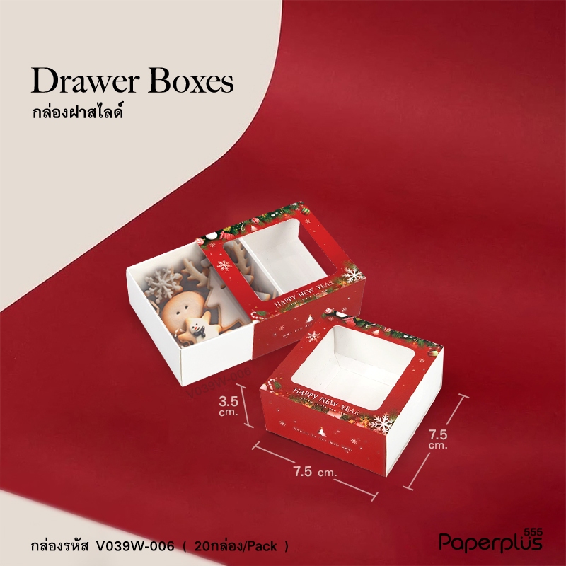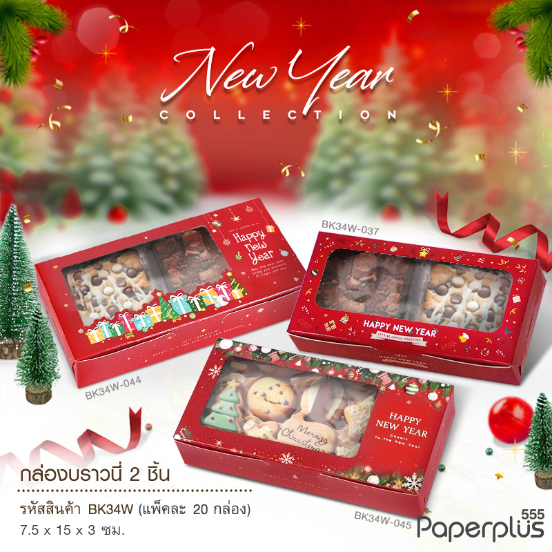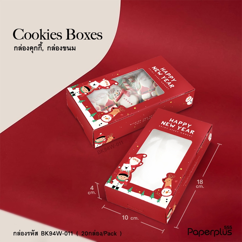 555paperplus กล่องขนมปีใหม่ (10ใบ/20ใบ) กล่องขนมสีแดง,กล่อง Giftset ปีใหม่ Happy New Year