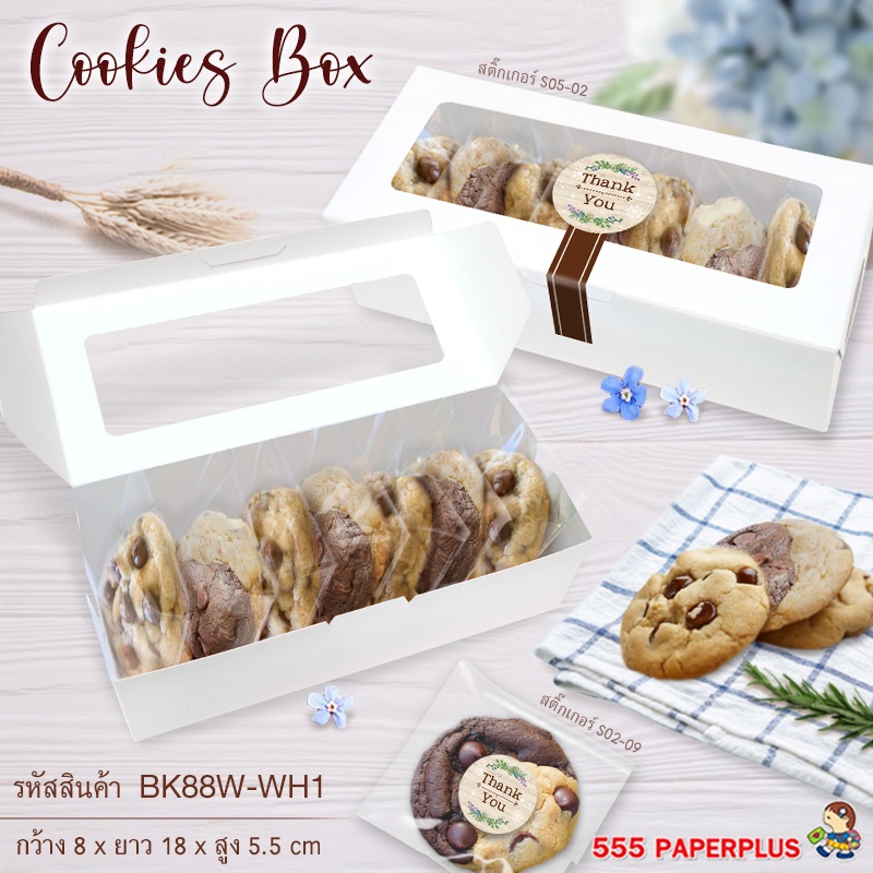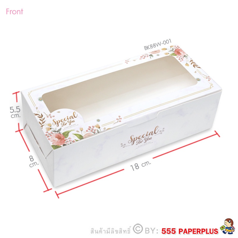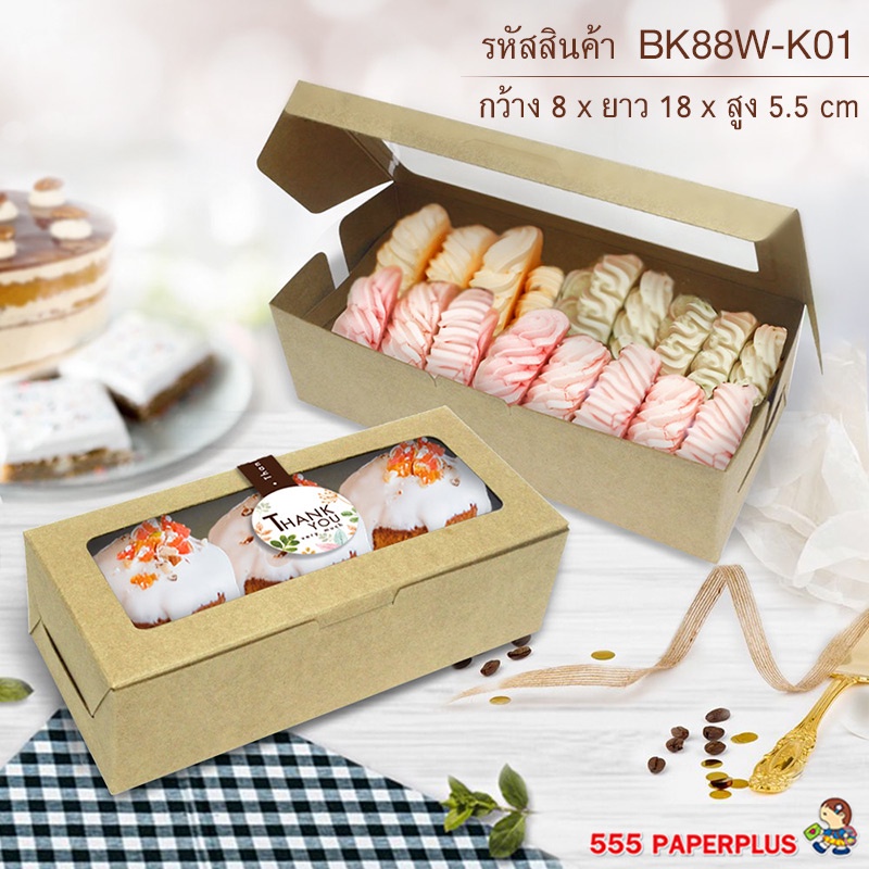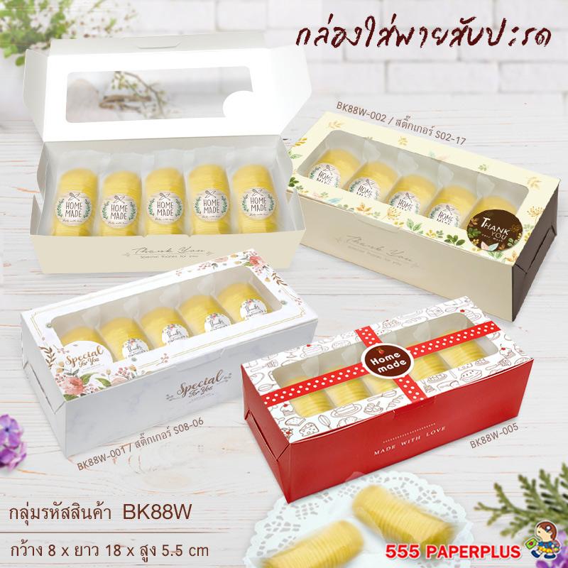 555paperplus ส่งทันที! กล่อง 20ใบ 8x18x5.5 แถมสติกเกอร์ (BK88W)กระดาษหนา กล่องใส่คุ้กกี้ กล่องใส่ขนม ท้อฟฟี่เค้ก