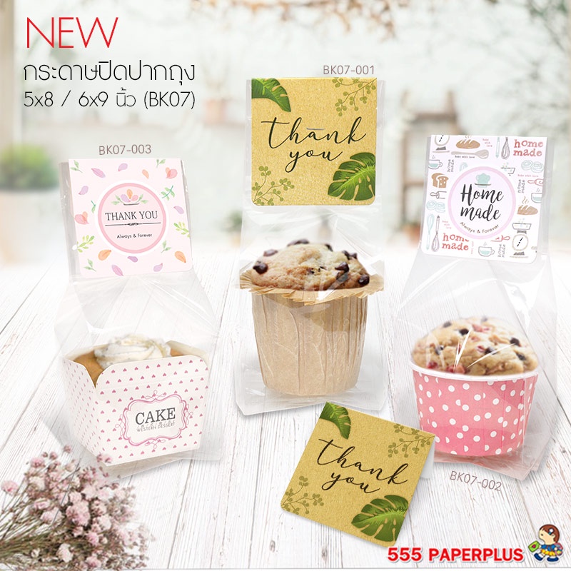 555paperplus กระดาษปิดถุงขนม2.5 นิ้ว (50ชิ้น)ใช้กับถุงจีบ5x8นิ้ว (BK79/ BK07)