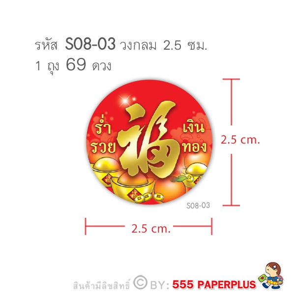 555paperplus สติ๊กเกอร์ ตรุษจีน ไหว้พระจันทร์ ข้อความมงคลจีน (30-69 ดวง) งานละเอียด คมชัด สวยงาม ตกแต่งกล่อง กล่องขนม
