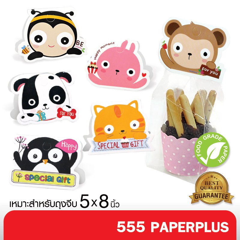 555paperplus หัวถุงขนม2.5นิ้ว (50ชิ้น) รูปสัตว์ ใช้กับถุงจีบ5x8 นิ้ว (ไม่รวมถุง) BK16