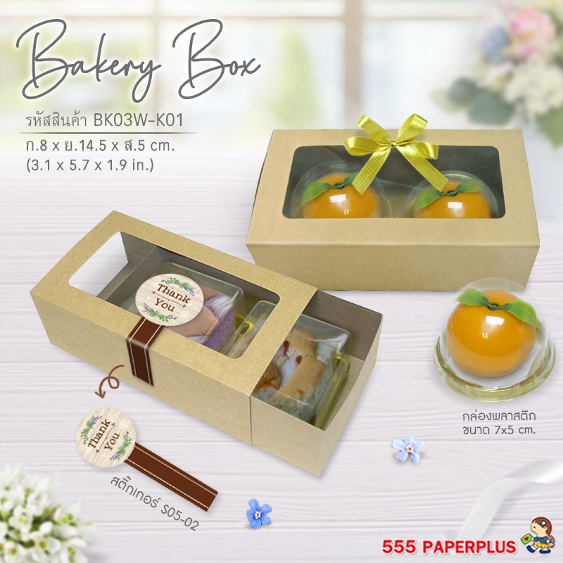 555paperplus ขายดี!! กล่องขนม คราฟท์ กล ่องเบเกอรี่ กล่องใส่ขนม (20ใบ) ราคาประหยัด (BK89W/BK03W)