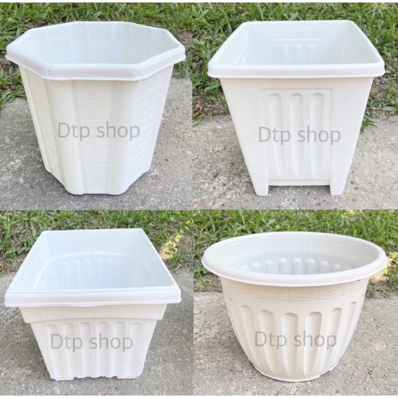กระถางพลาสติก สีขาว7,8,9 นิ้ว ใช้ปลูกต้นไม้ ดอกไม้ กระถางต้นไม้