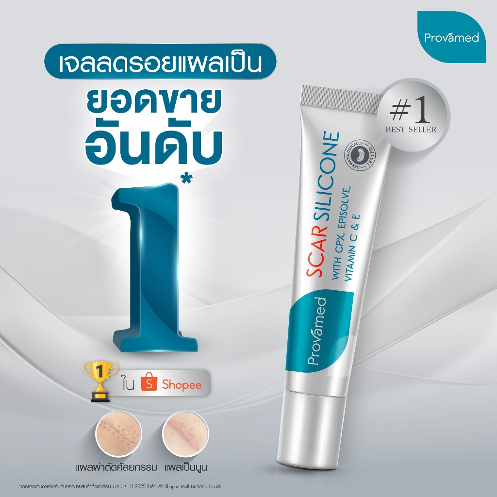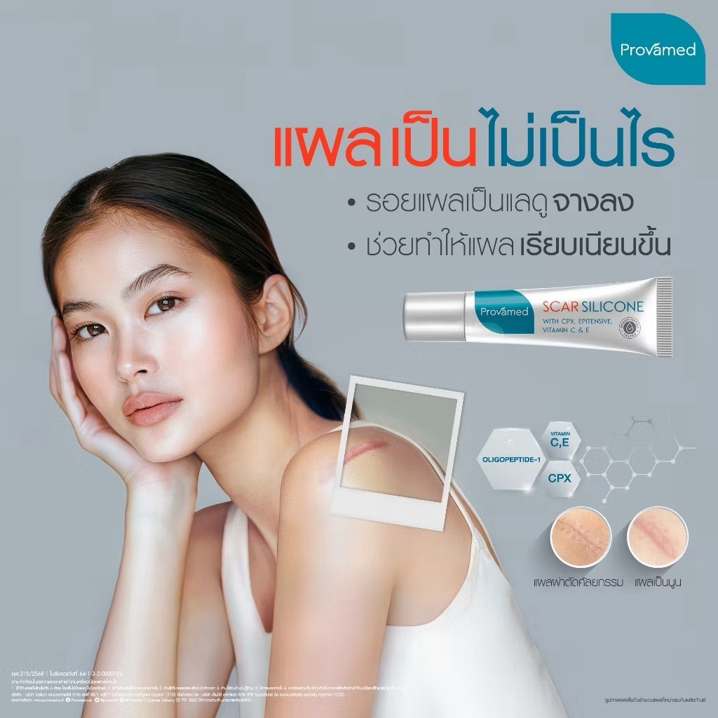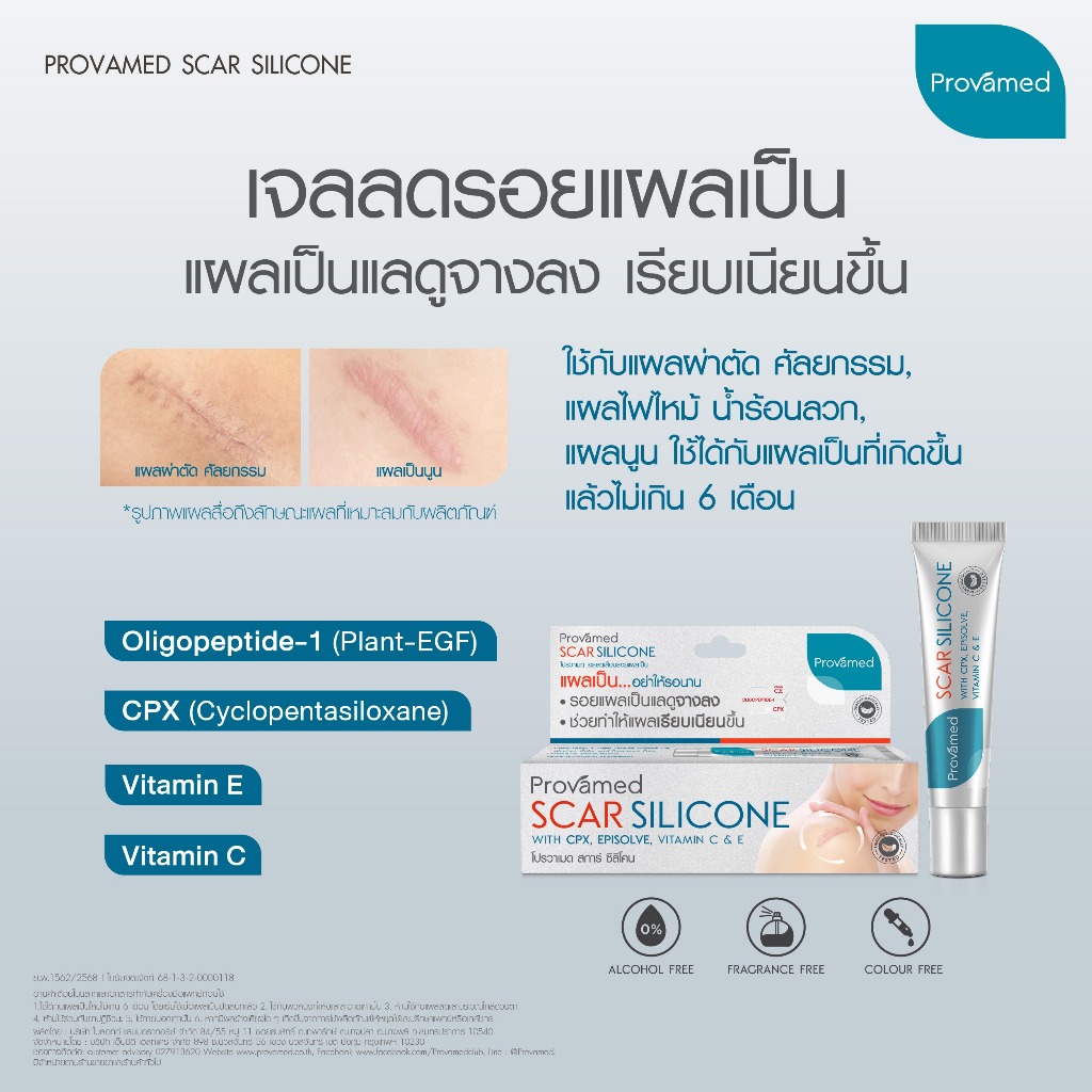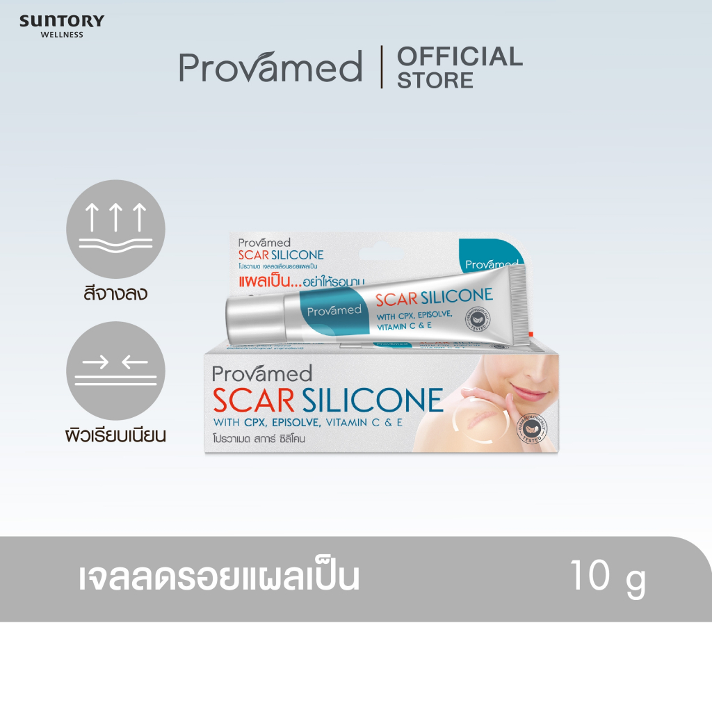 PROVAMED SCAR SILICONE 10 G โปรวาเมด สการ์ ซิลิโคน ผลิตภัณฑ์ดูแลผิวที่มีรอยแผลเป็น 10 กรัม
