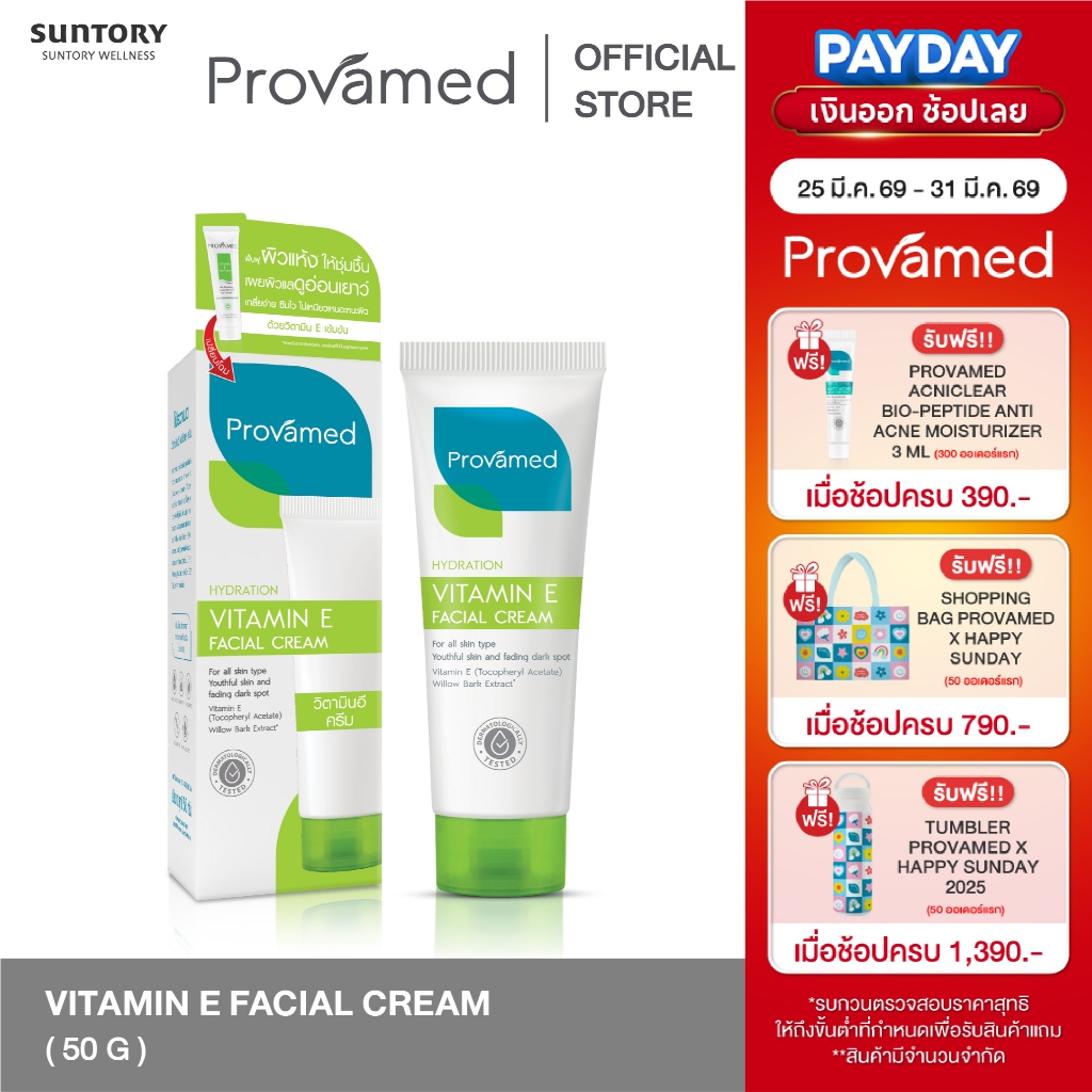 [NEW] PROVAMED VITAMIN E FACIAL CREAM 50 G - โปรวาเมด วิตามินอี ครีมเซรั่มบำรุงผิวสูตรเข้มข้น 50 ก