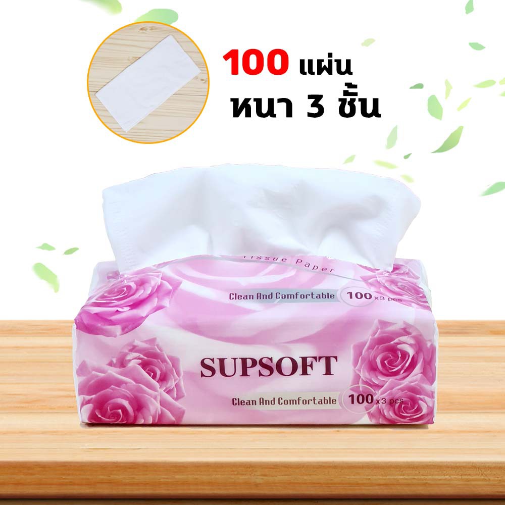 ทิชชู่ กระดาษชำระ ไร้ฝุ่น ไม่เป็นขุย แพ็ค 100 แผ่น หนา 3 ชั้น (1ชิ้น)