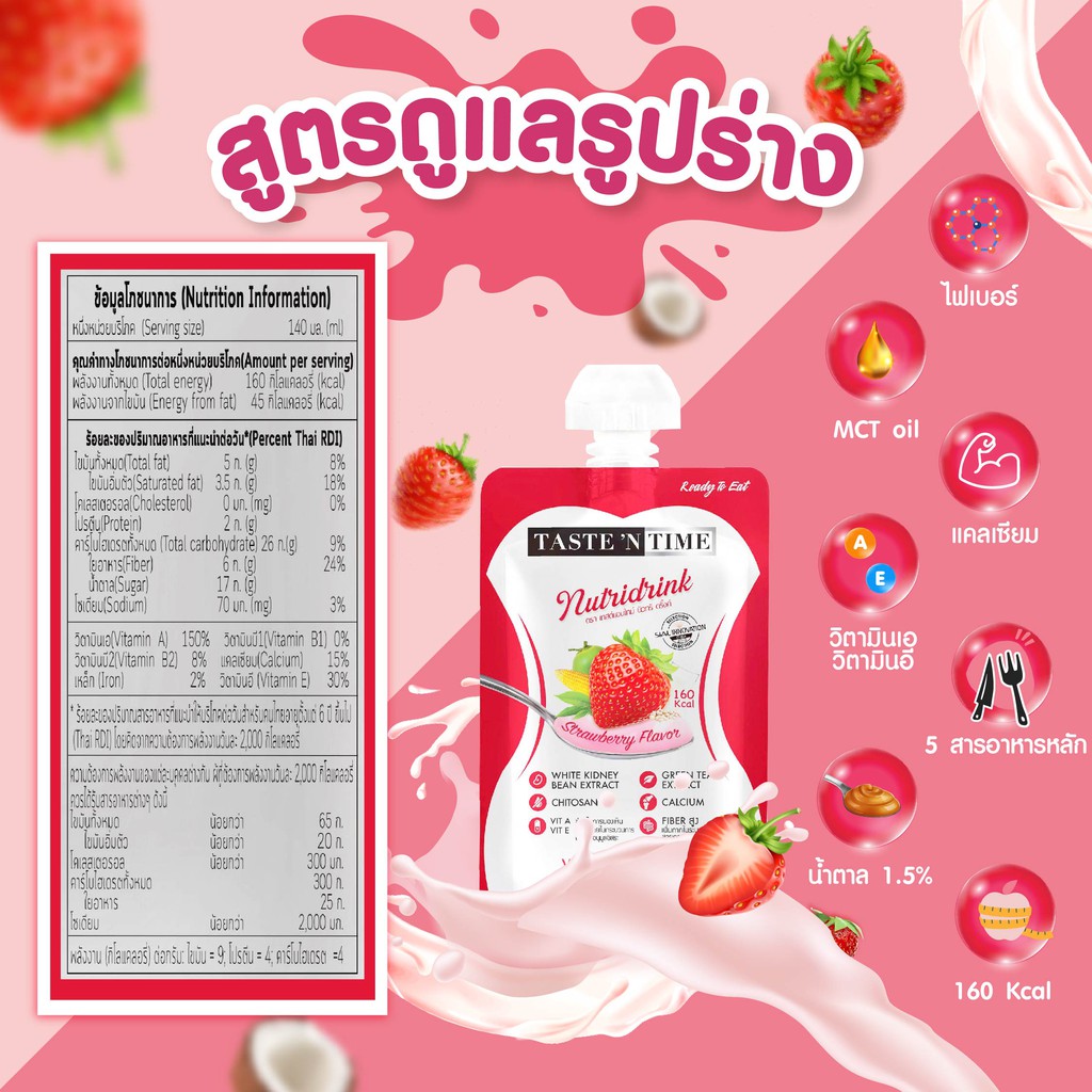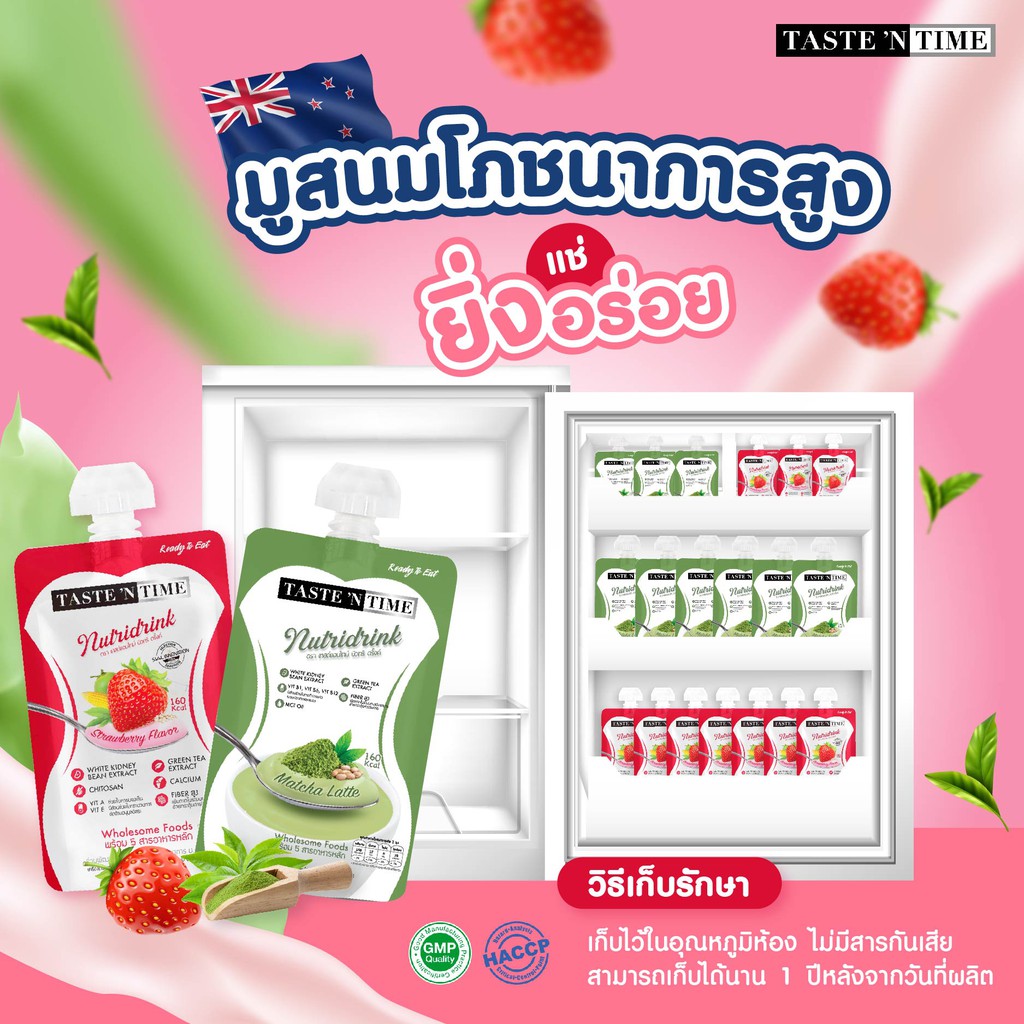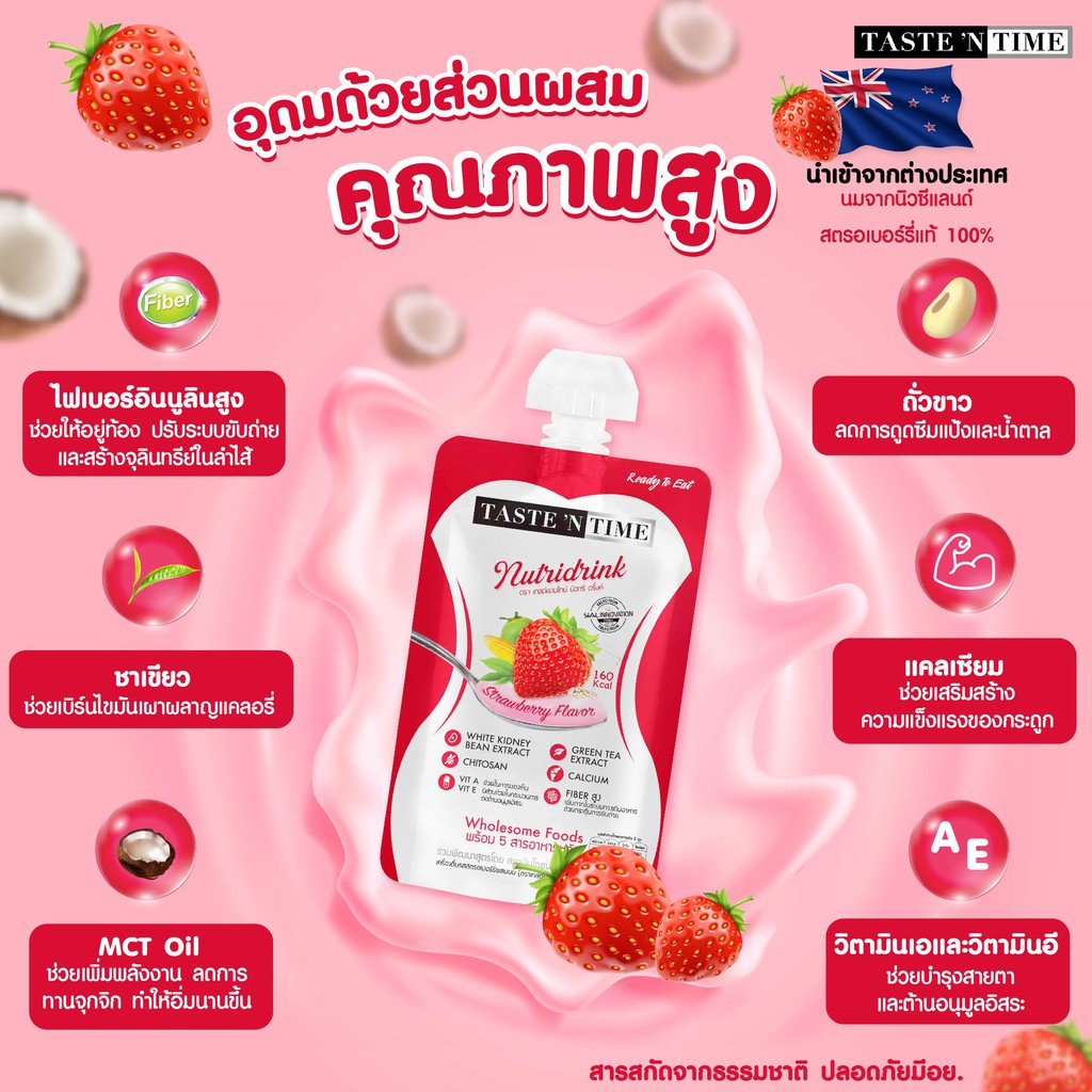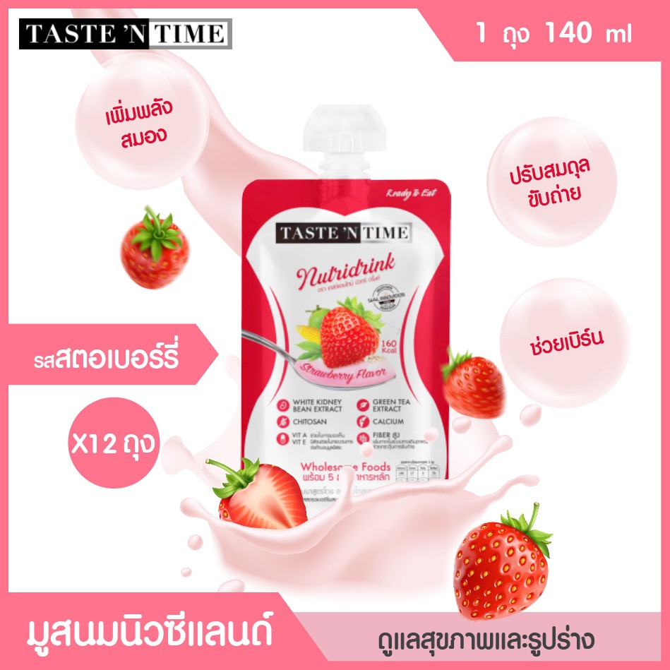 tastentime มูสนมนิวทริดริ๊ง รสสตรอเบอร์รี่ 12ถุง 140ml ดูแลสุขภาพและรูปร่าง ควบคุมน้ำหนัก ไฟเบอร์สูงช่วยขับถ่าย