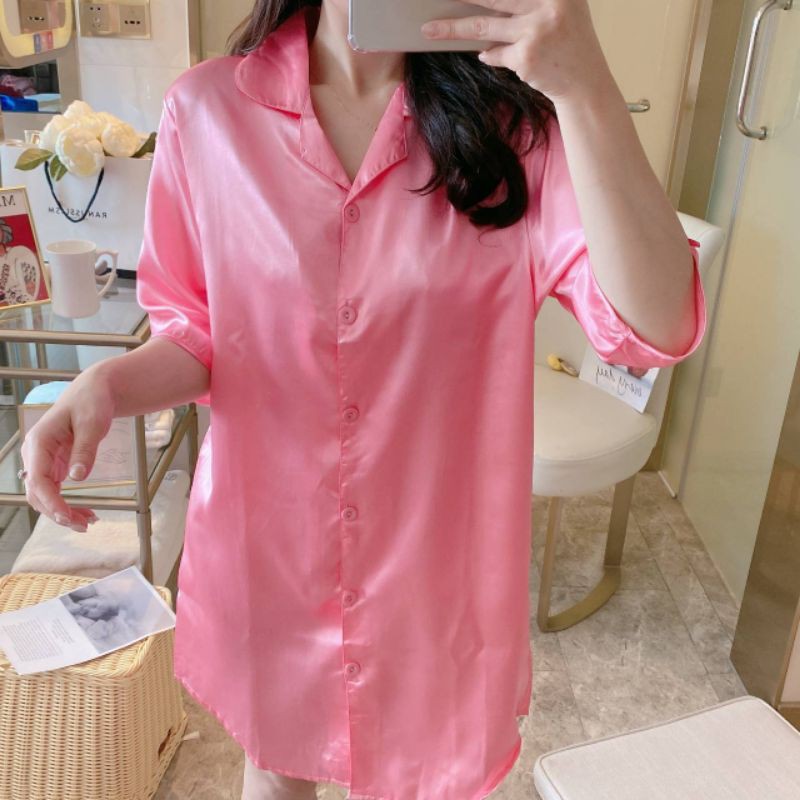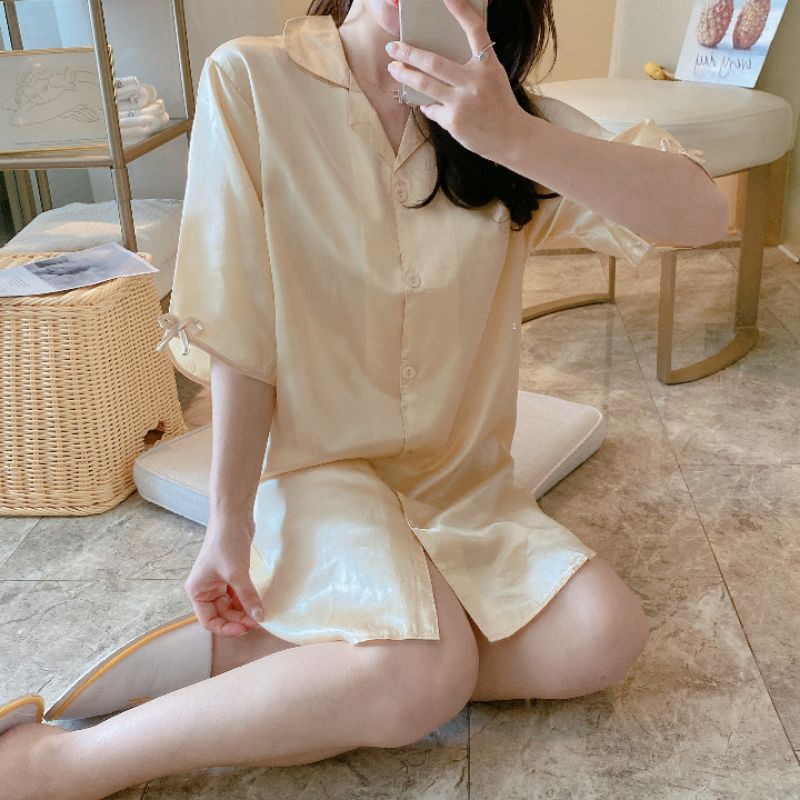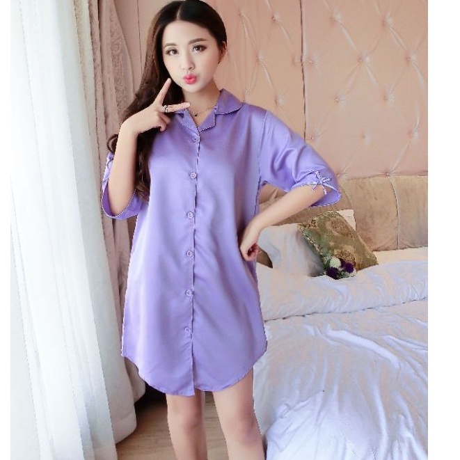 พร้อมส่งเลยจ้ชุดนอนกระโปงแขนสามส่วนใส่สบายมีหลายสีให้เลือกจ่านุ่มสบาย