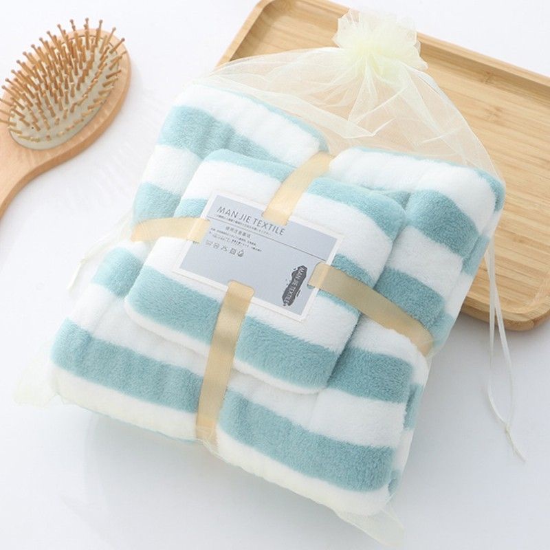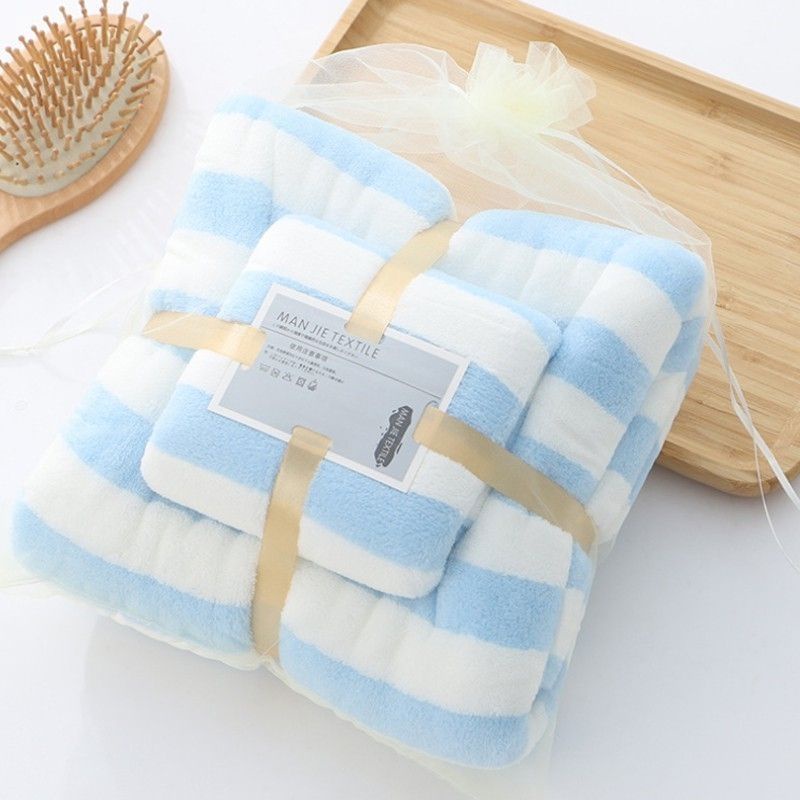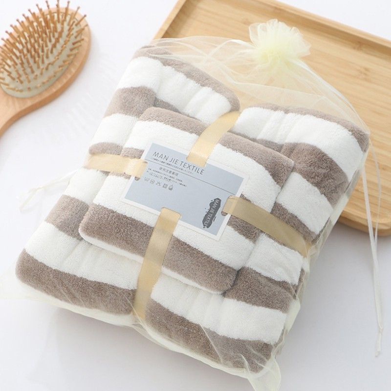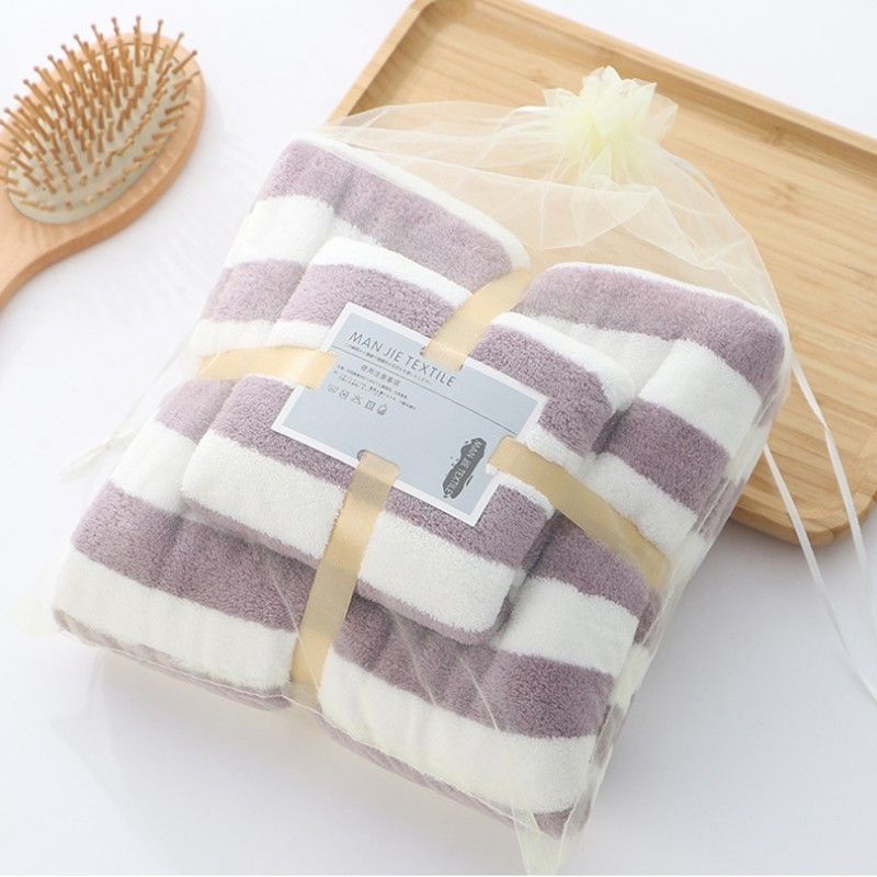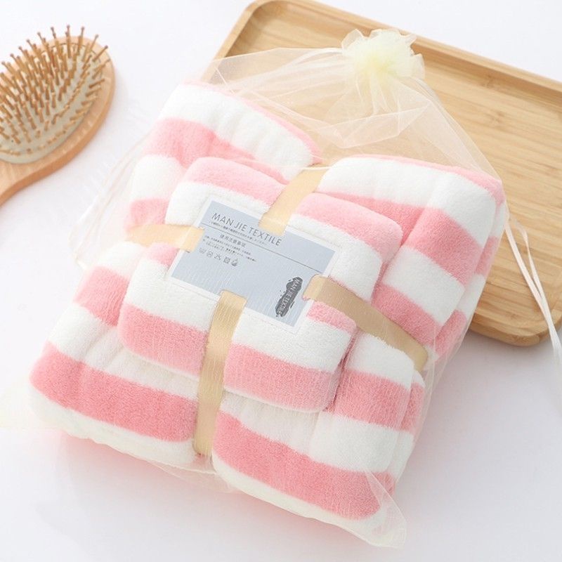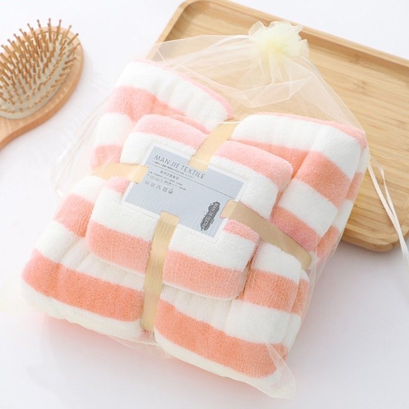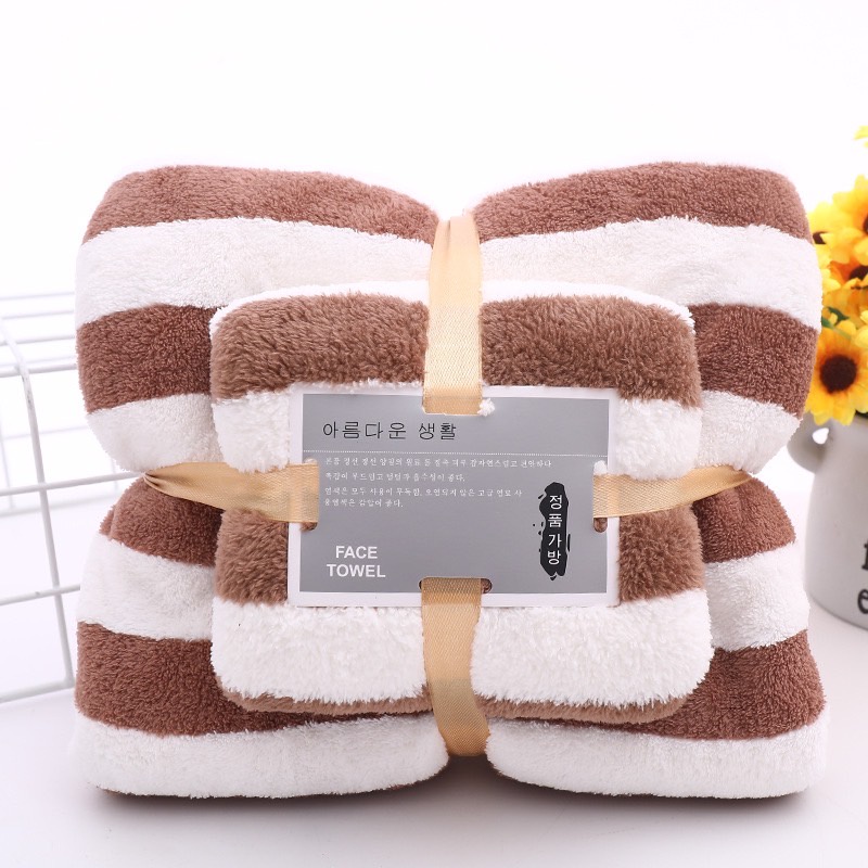 ชุดผ้าขนหนู001 ซึมซับน้ำได้ดี แพ็ค+คู่ ผ้าเช็ดตัว (ชุดริ้วใหญ่)