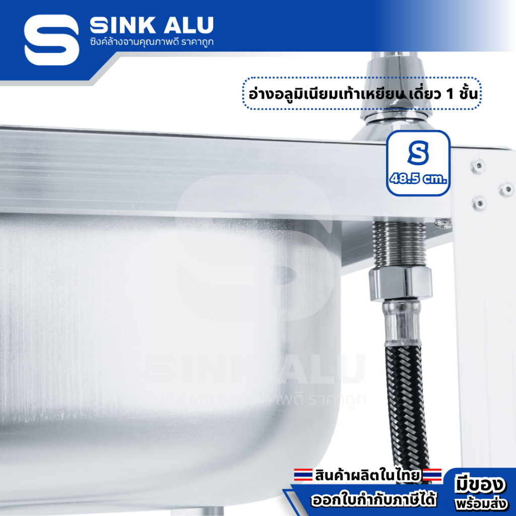 อ่างล้างจาน อลูมิเนียม เท้าเหยียบ S-48.5cm. ที่คว่ำจาน 1 ชั้น มีก๊อกน้ำ อ่าง อ่างล้างมือ อ่างล้างจาน ซิ้งล้างจาน