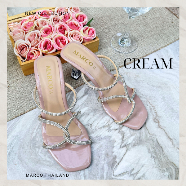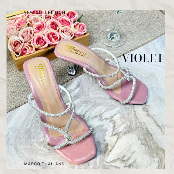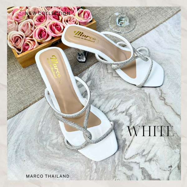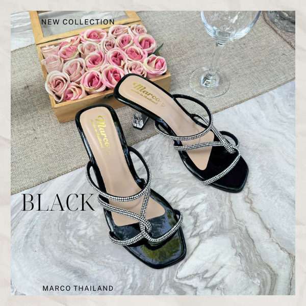 รองเท้าส้นแก้ว แบรน์ด MARCO รุ่นB1030 สูง 2 นิ้ว สายเพชร สวยหรู