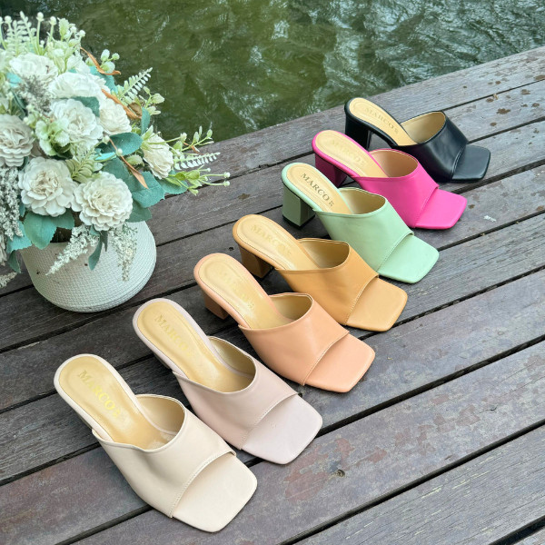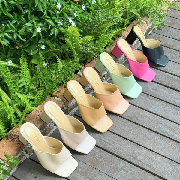รองเท้าแฟชั่น แบรนด์ MARCO รุ่น A1081 ส้นสูง 2.5นิ้ว แบบสวม หนังเรียบเกรดพรีเมี่ยม