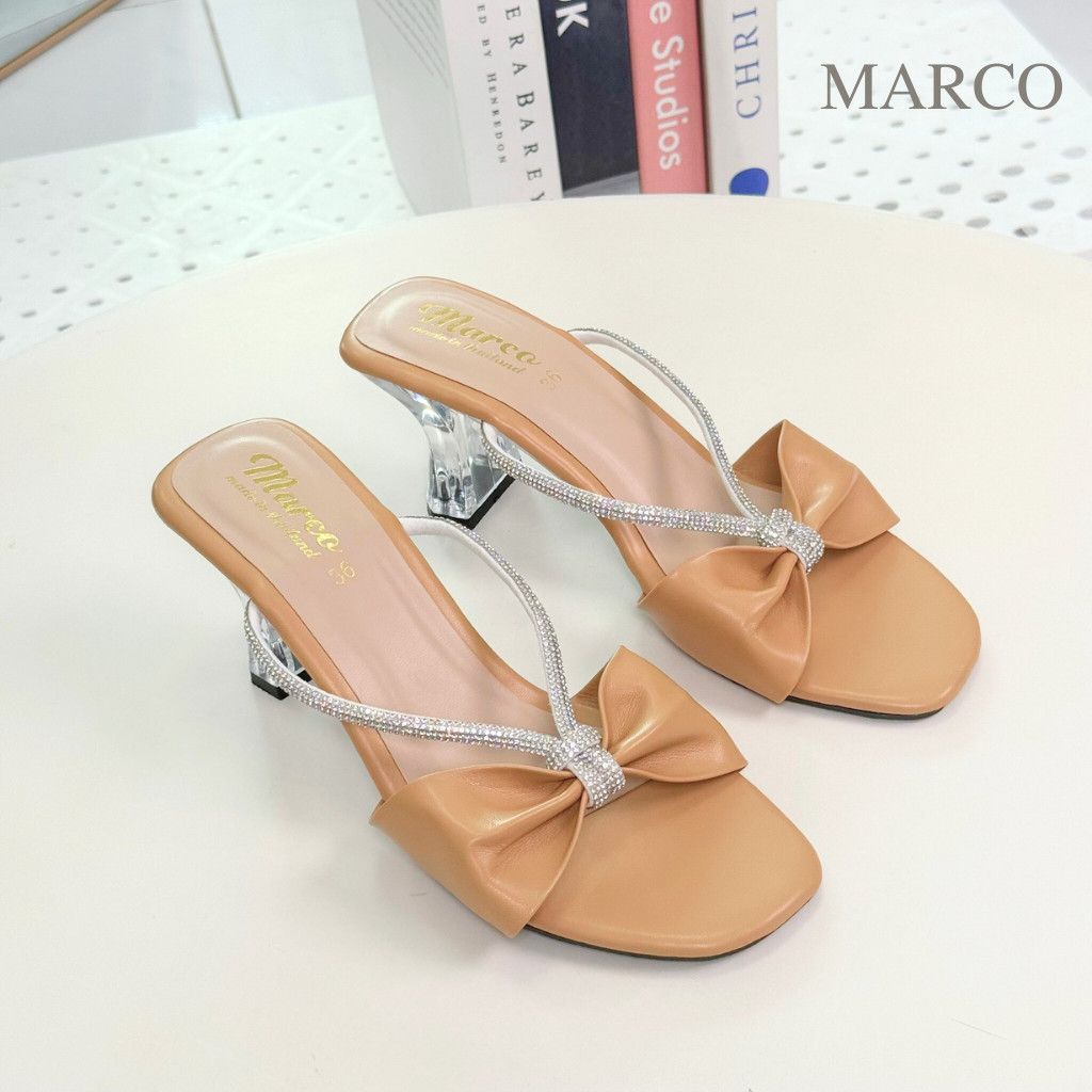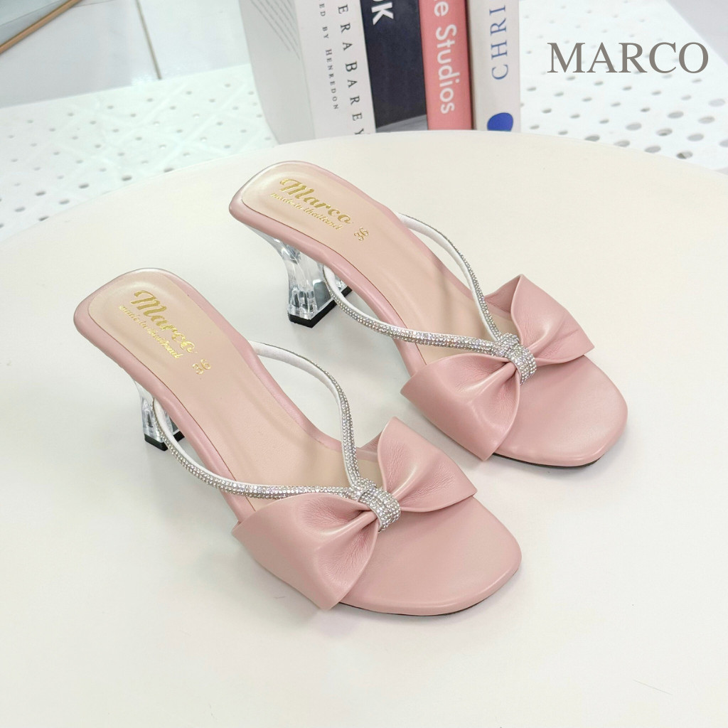 รองเท้า แฟชั่น แบรน์ด Marco รุ่น B1031 ส้นแก้วสูง 2 นิ้ว แต่งโบว์สายเพชร