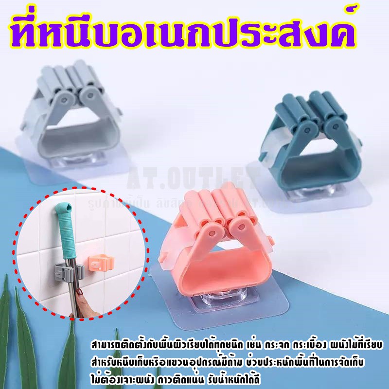 AT.OUTLET ที่หนีบอเนกประสงค์ ที่หนีบไม้กวาด ไม้ถูพื้น เเบบติดผนัง