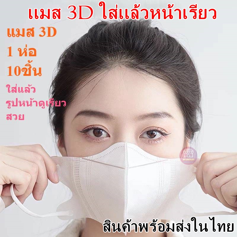 AT.Outlet แมสปิดจมูก รุ่น 3D ไซส์ผู้ใหญ่ 10ชิ้น/ห่อ สีขาวกับดำ พร้อมส่งจากไทยค่ะ
