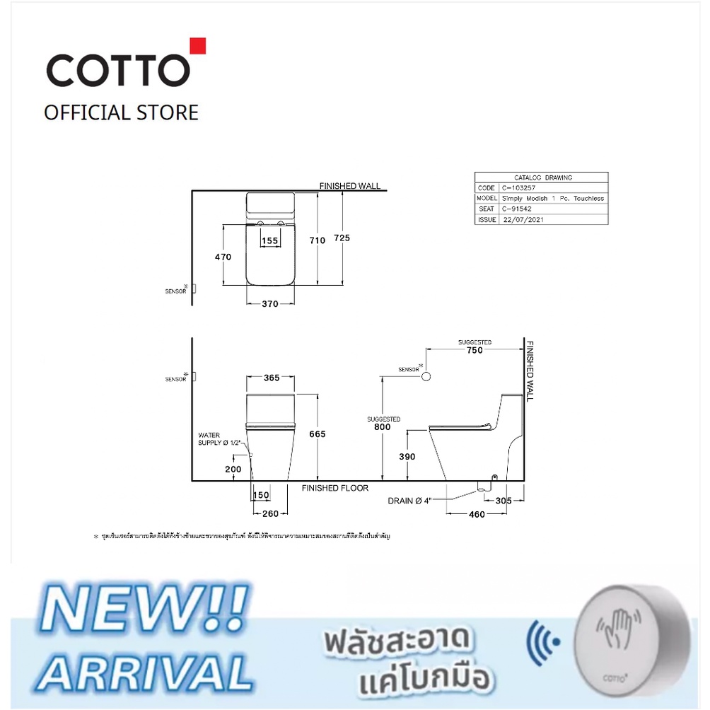 COTTO สุขภัณฑ์ชิ้นเดียว พร้อมเซ็นเซอร์โบกสัมผัส รุ่น รุ่น ชิมพลิ โมดิช (UC+) C103257