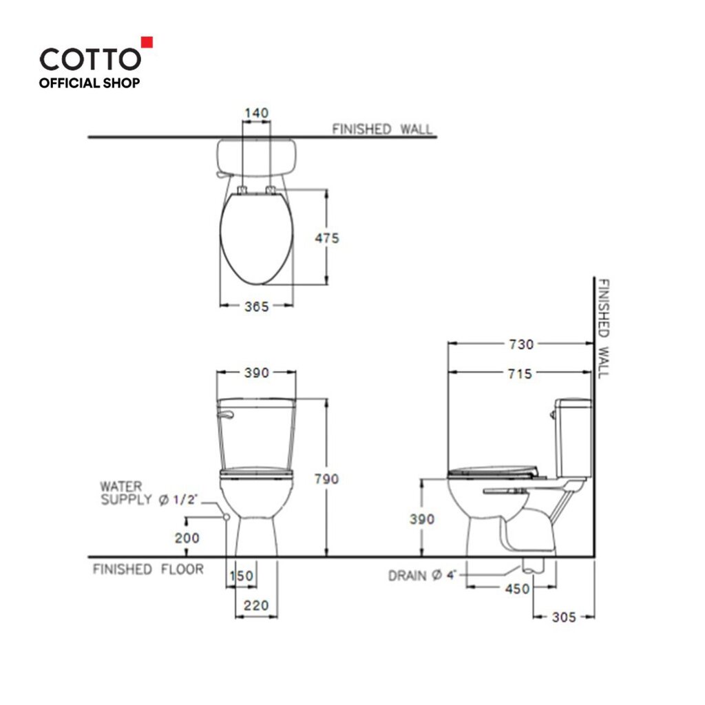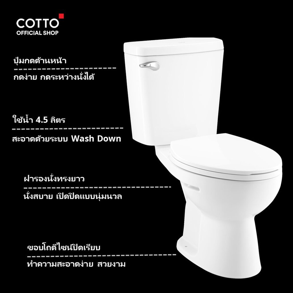 COTTO สุขภัณฑ์แบบสองชิ้น รุ่น C13444 Boom 4.5L (ปุ่มกดชำระด้านหน้า)