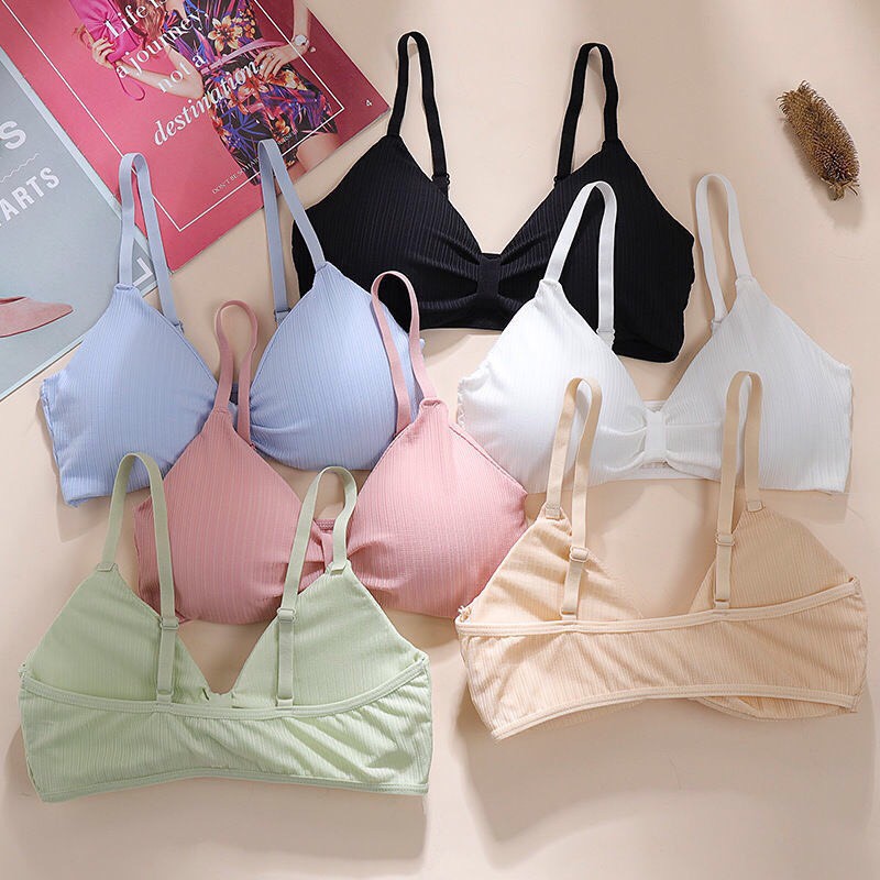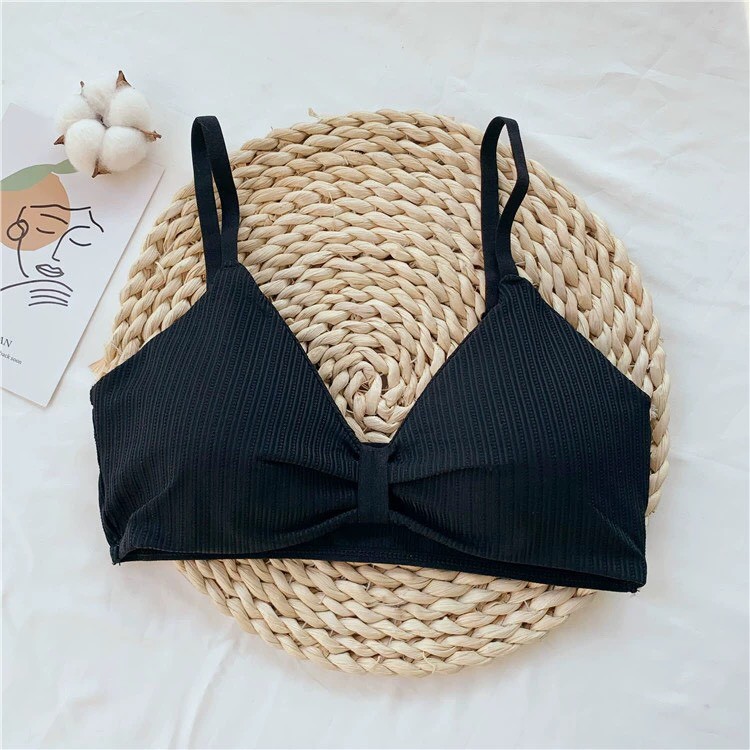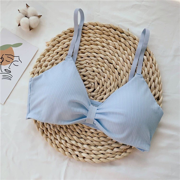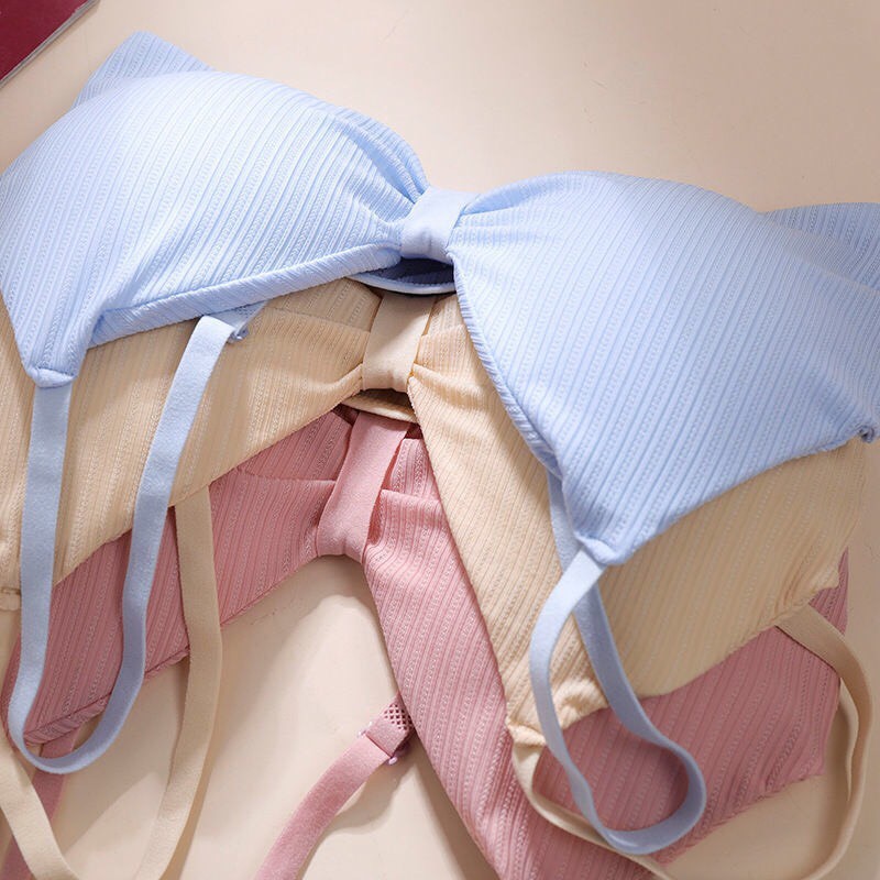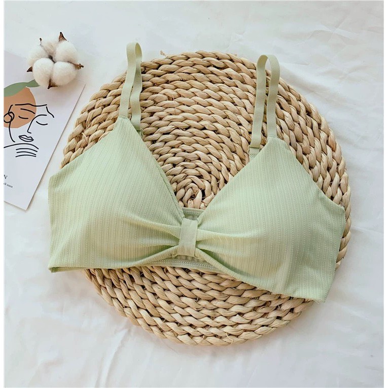 มาใหม่! บราแฟชั่น แบบสวม ไร้โครง ด้านหน้ารูปโบว์ ฟองน้ำถอดได้ อกได้32-36 #3336