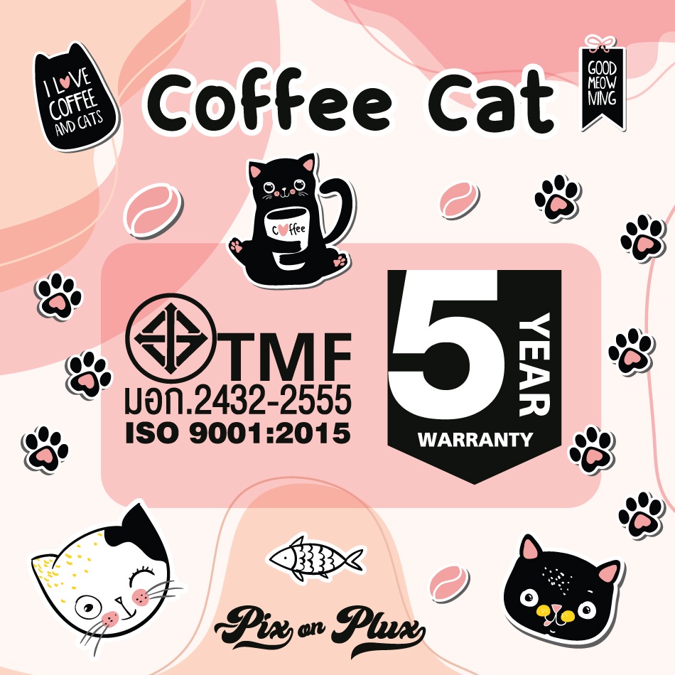 [พร้อมส่ง] PixonPlux ปลั๊กไฟ ลาย "คอฟฟี่แคทเหมียว2" 2,4,5 ช่อง+ 2USB /1.8,3 M ปลั๊กมอก ปลั๊กพ่วง รับประกันสินค้า 5 ปี