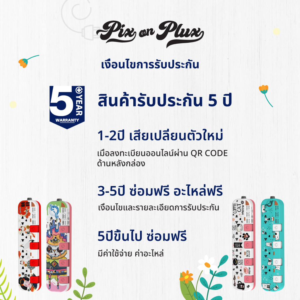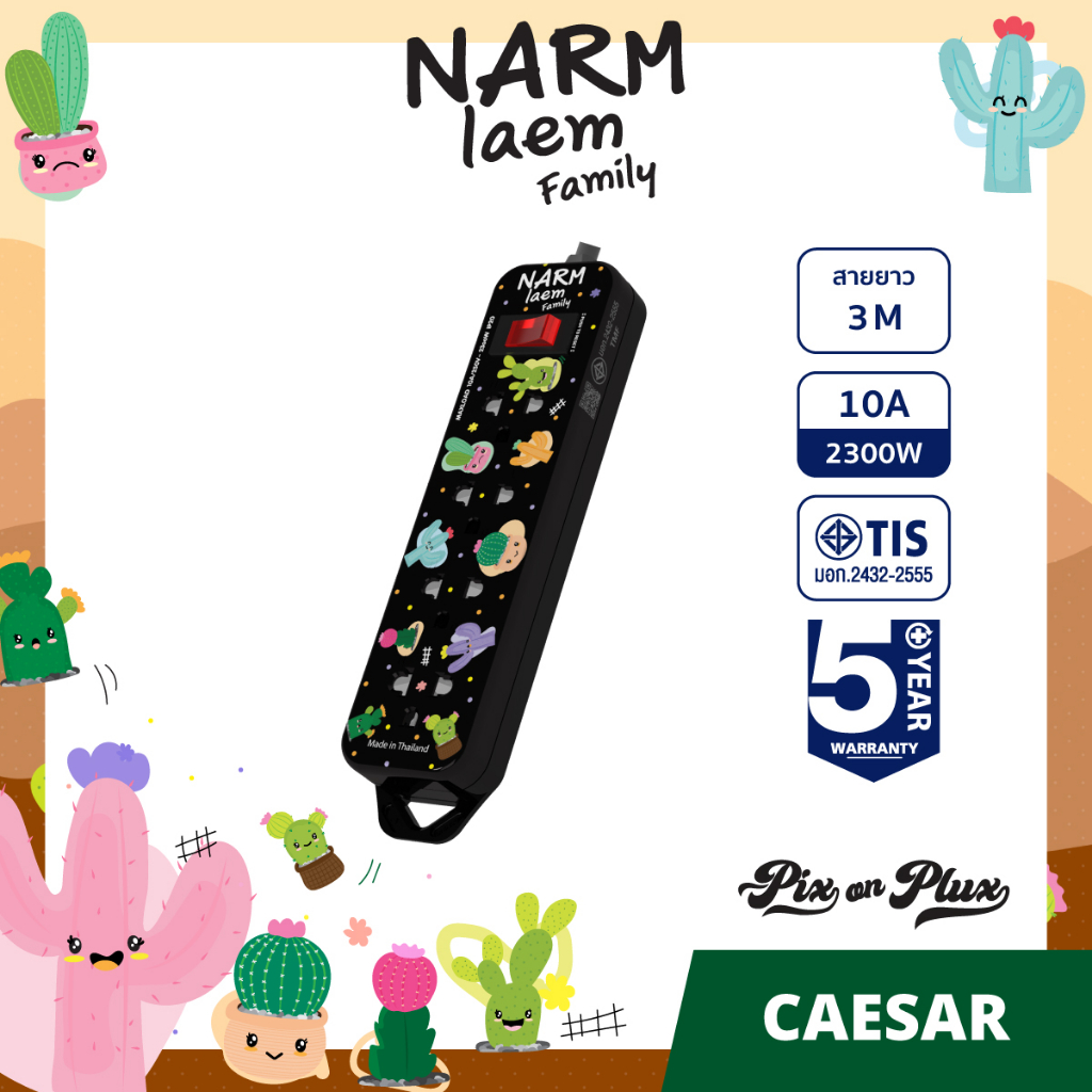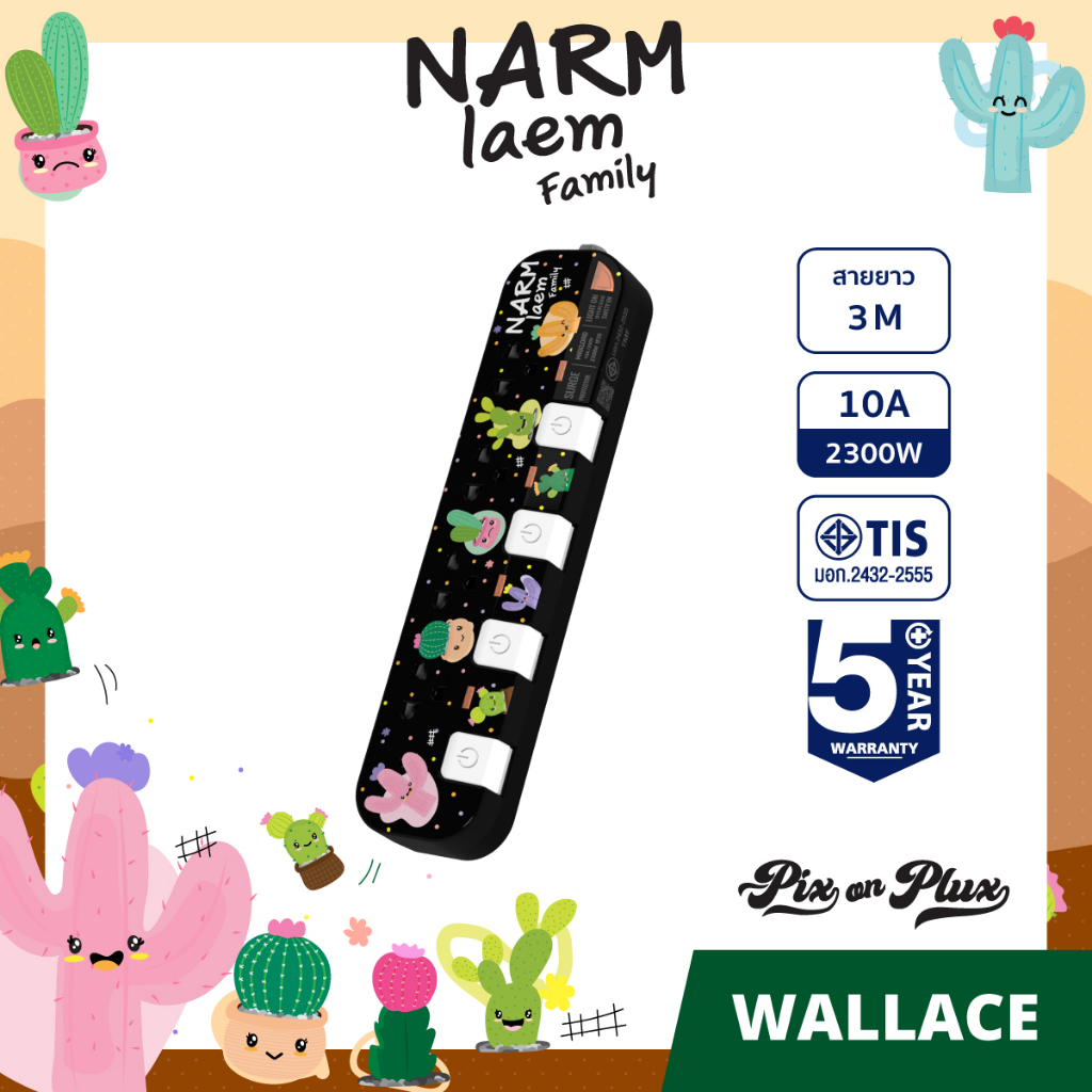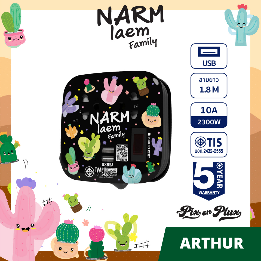 PixonPlux ปลั๊กไฟ ลาย "Narm laem Family"2,4 ช่อง+ 2USB /1.8,3 M ปลั๊กมอก ปลั๊กพ่วง