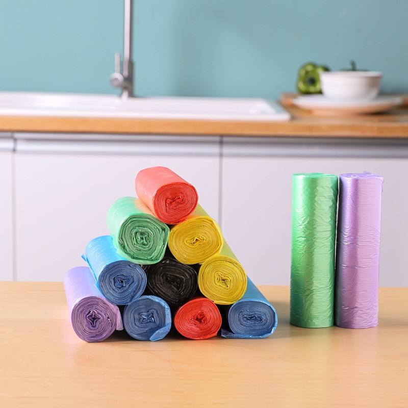 ถุงขยะ พกพา ถุงขยะม้วนละ15 ใบขนาด 45×50 (รวมสี คือร้านสุ่มสีให้ ในแพคเป็นสีเดียวกันทั้งห้าม้วน)