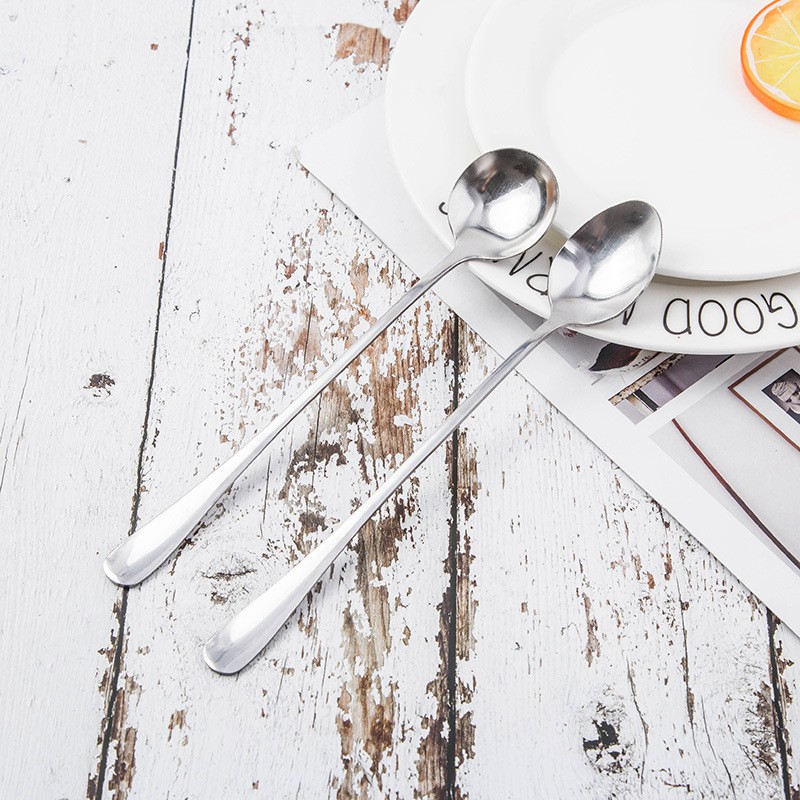 (ขนาดยาว อย่างหนา) ช้อนชงกาแฟลายออคิด ชงชา ช้อนเล็ก สแตนเลส