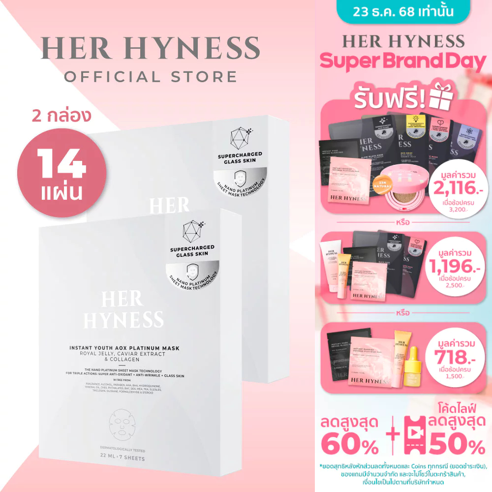 HER HYNESS INSTANT YOUTH AOX PLATINUM MASK (7 SHEETS) แพลทินัมมาส์ก 7 แผ่น