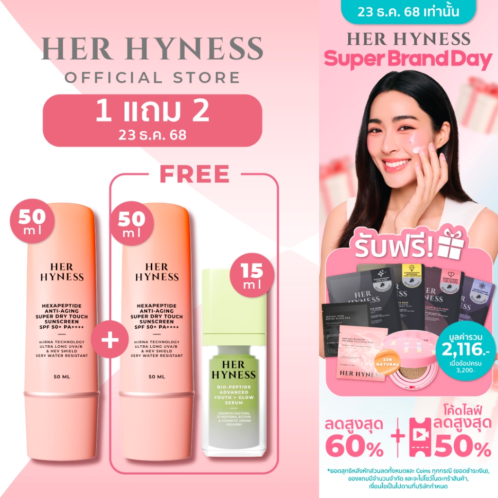 HER HYNESS HEXAPEPTIDE ANTI-AGING SUPER DRY TOUCH SUNSCREEN 50ML กันแดดสูตรกันน้ำกันเหงื่อ 50มล.