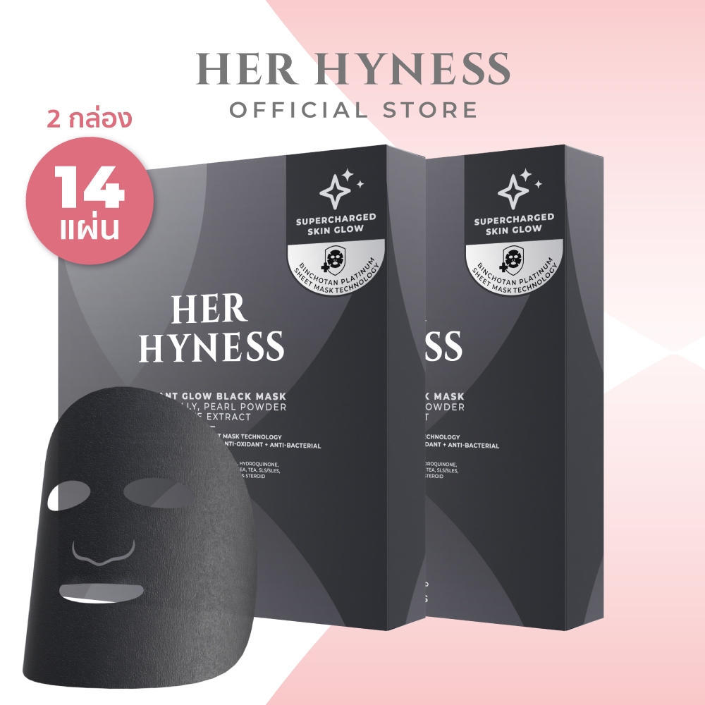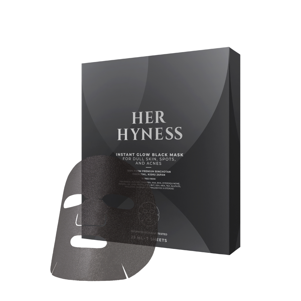 HER HYNESS INSTANT GLOW BLACK MASK (7 SHEETS) เฮอ ไฮเนส แบล็คมาส์ก เพื่อผิวโกลว์ใส 7 แผ่น