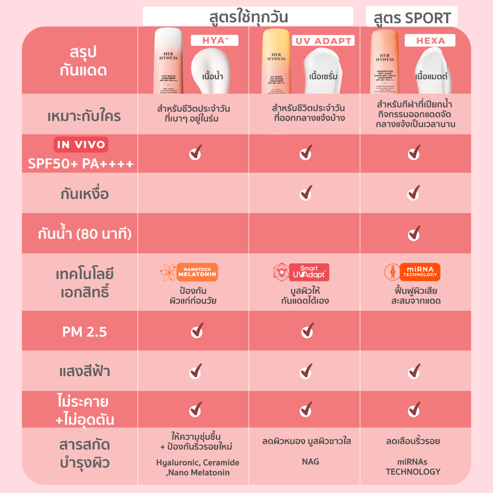 HER HYNESS HYA+ WATER SUNSCREEN 30ML กันแดด บำรุงผิวหน้า เพิ่มความชุ่มชื้น ผิวแพ้ง่าย 30มล.