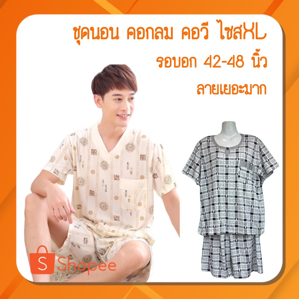 ชุดนอนไซส์ XL รอบอก42-48นิ้ว คอวีคอกลม เลือกลายได้/คละสี ชุดนอนแขนสั้นขาสั้น ผ้าสเปนเด็กซ์