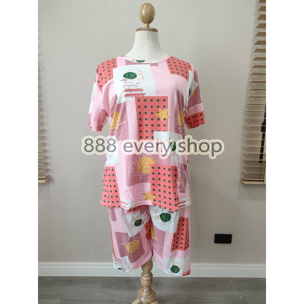 ชุดนอนไซส์ใหญ่6XL ชุดนอนแขนสั้นขาสามส่วน ชุดนอนคนอ้วน น้ำหนัก100กก.ใส่ได้