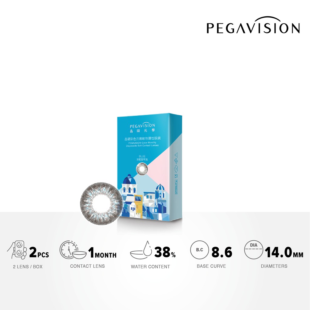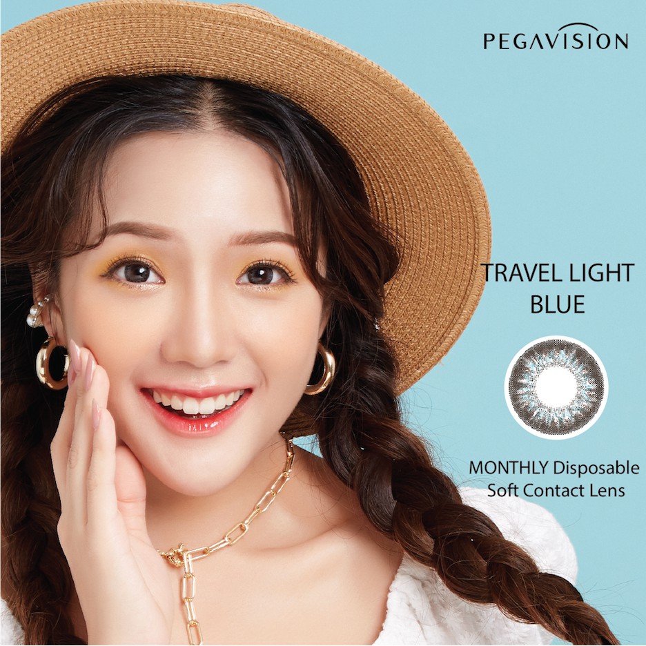 PEGAVISION คอนแทคเลนส์สี รายเดือน รุ่น Travel Light สี Blue (2 เลนส์/กล่อง)