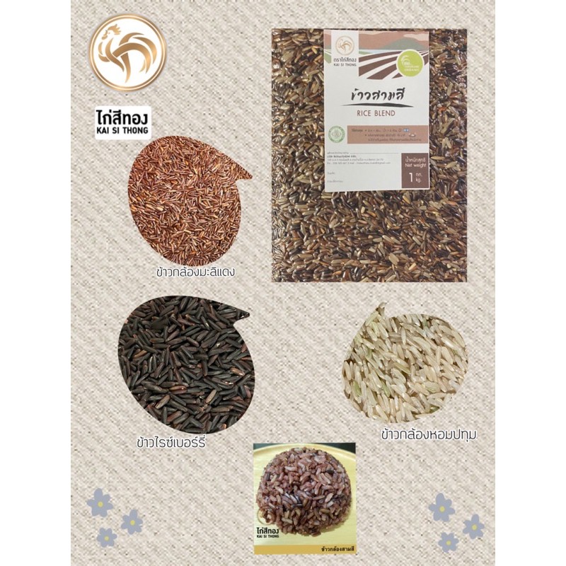 🌾ข้าวกล้องสามสี RICE BLEND ข้าวใหม่ ตราไก่สีทอง Organic ปลอดสาร 1 กก.
