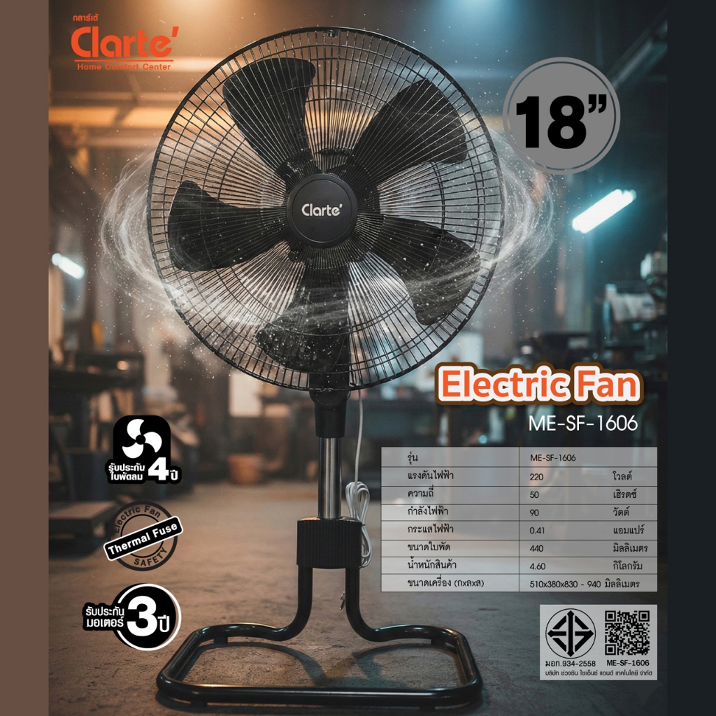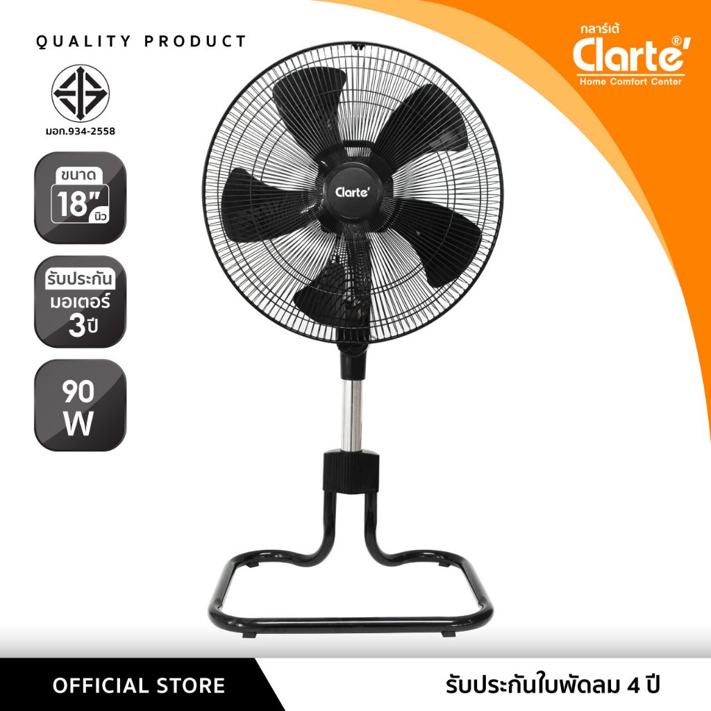 [สินค้าขายดีรับประกันใบพัด4ปี]Clarte'พัดลมอุตสาหกรรม18 นิ้วสไลด์5ใบพัดสีขาวรุ่นCT828ST/สีดำรุ่นCTMSF-1606เสียงเงียบลมแรง