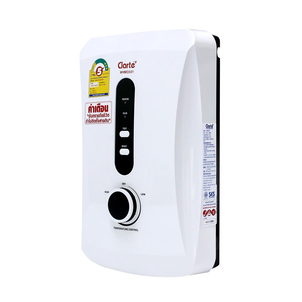 Clarte' เครื่องทำน้ำอุ่น 3,500 วัตถ์พร้อมอุปกรณ์ฝักบัวครบชุดมีให้เลือก2รุ่น รุ่นWHM3501/WHM3502