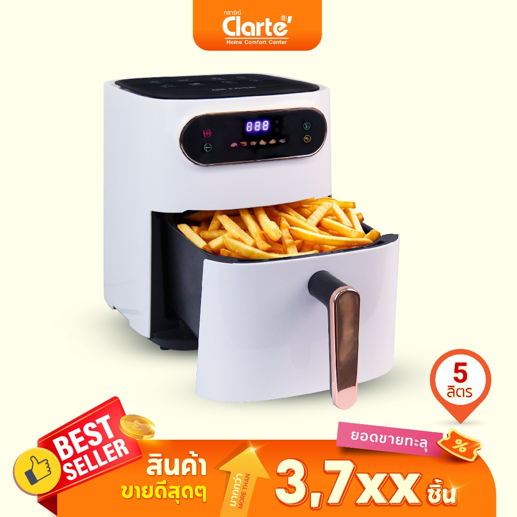 Clarte' AirFryerหม้อทอดไร้น้ำมันอเนกประสงค์ระบบดิจิตอล ความจุขนาดใหญ่ 5ลิตรพร้อมตะแกรงรองหม้อทอดรุ่นME-AF-5Dพร้อมส่ง