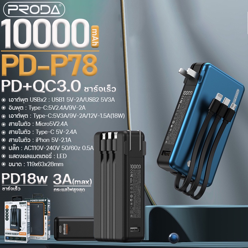 พาเวอร์แบงค์ แบตสำรอง PRODA PD-P67,PD-P78 10000mAh/ Yoobao PD12,PD21-V2 ชาร์จเร็ว 10000/20000mAh Powerbank อินพุต Type-C
