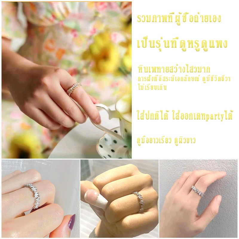 Vvi แหวนเงินแท้ 925 ฝังเพชรสวิส(CZ) สไตล์เกาหลี เครื่องประดับแฟชั่นผู้หญิง ของขวัญ