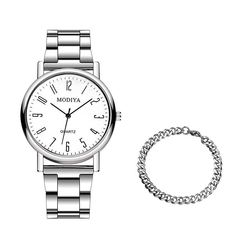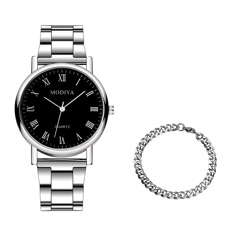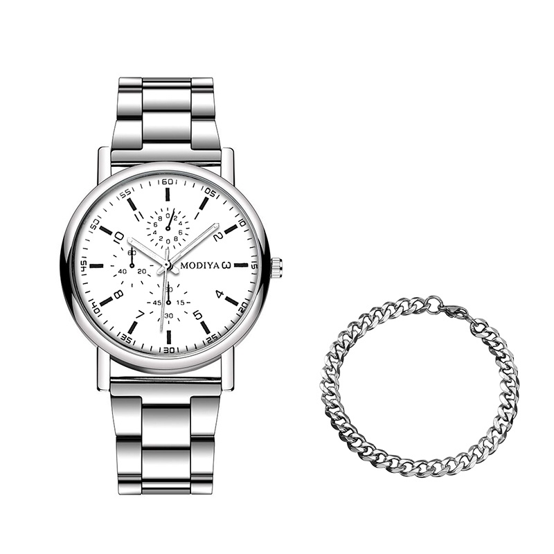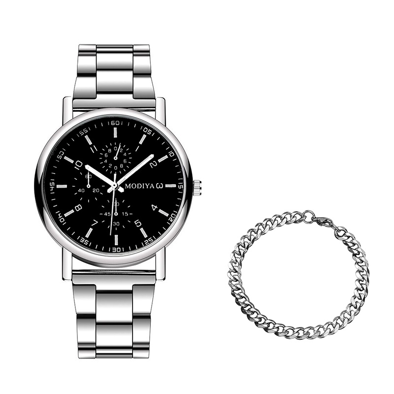 【นาฬิกาข้อมือ + สร้อยข้อมือ】นาฬิกาควอตซ์ ลําลอง สําหรับผู้ชาย พร้อมสายสแตนเลส