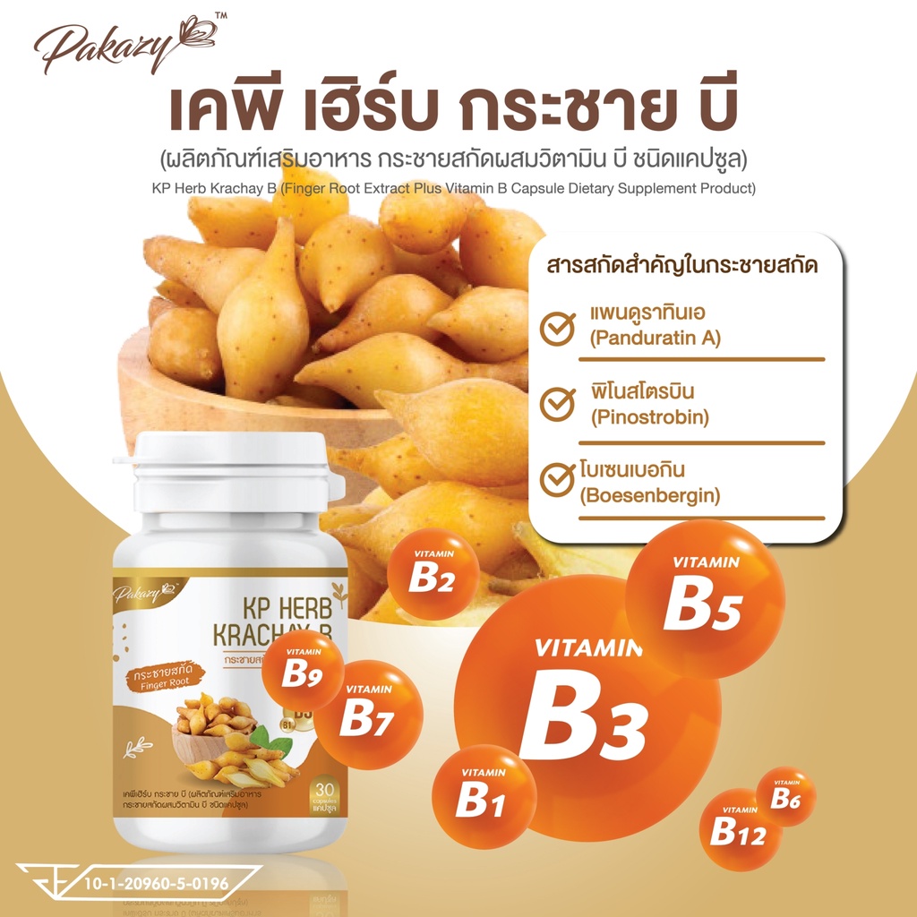 Pakazy KP Herb Krachay B กระชายขาวสกัด ผสมวิตามินบี 30 แคปซูล